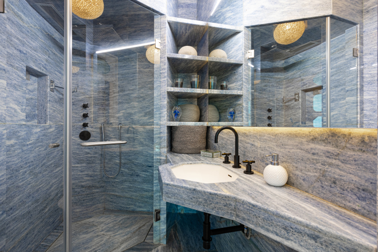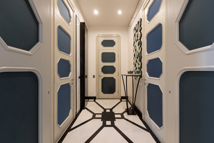 В апартаментах могут размещаться до 3-х гостей. В квартире две комнаты, разделённые коридором, есть тёплые мраморные полы, мощная приточно-вытяжная вентиляция и разноуровневый свет, большая терраса с видом на море, откуда вечером открывается вид на мерцающую бухту.