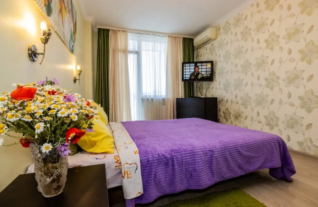 Апартаменты подходят для размещения 2-3 человек, находятся в многоквартирном доме на 8 этаже. В наличии 2 балкона.
