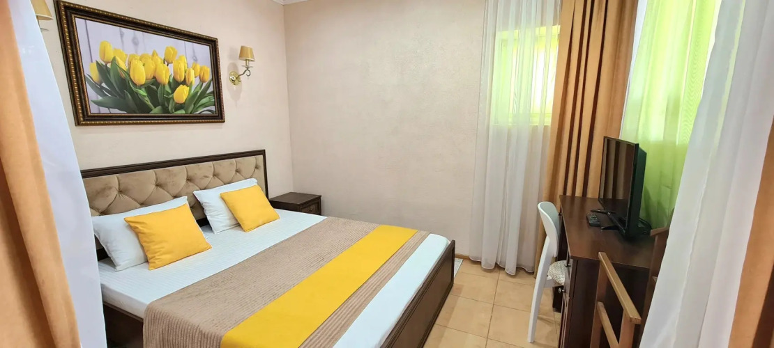 Чтобы вы могли отдохнуть после долгого дня, в номере есть телевизор и халат. Оснащение зависит от выбранной категории номера.