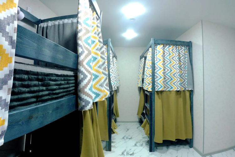 Номера хостела оборудованы двухъярусными кроватями с ортопедическими матрасами, оснащены шторками и индивидуальным источником освещения. В комплекте постельное белье и полотенца. Шкафчики с замками для хранения личных вещей. Санузлы с душевыми стойками.