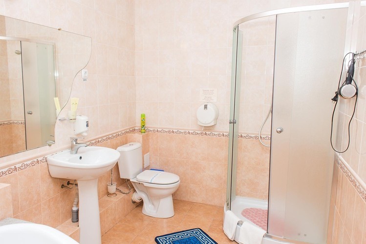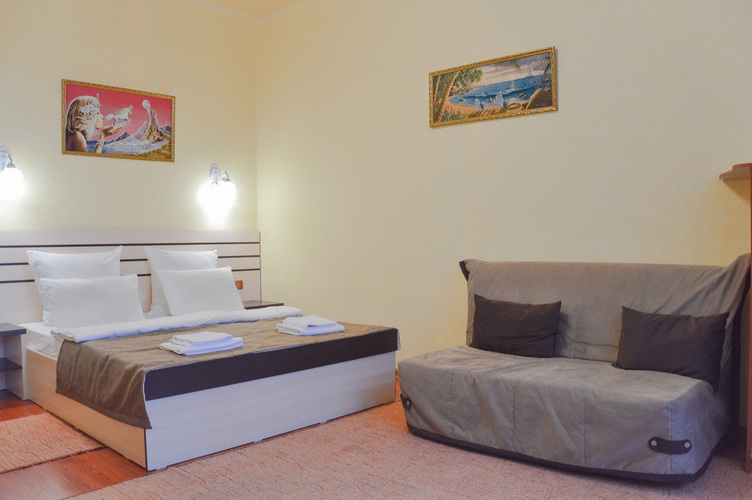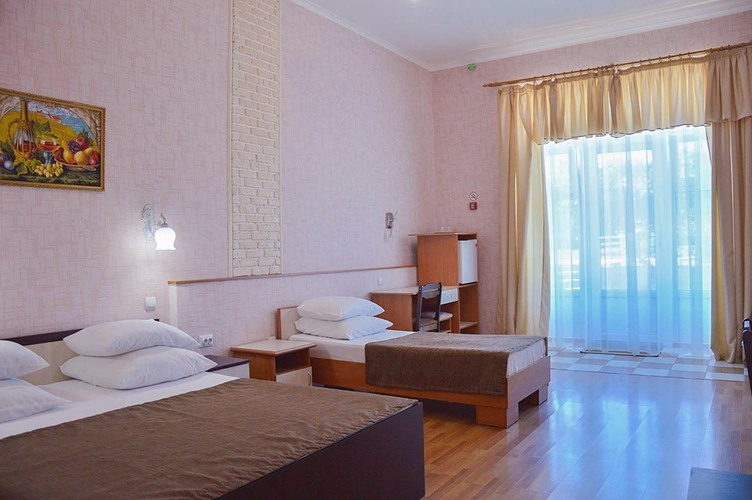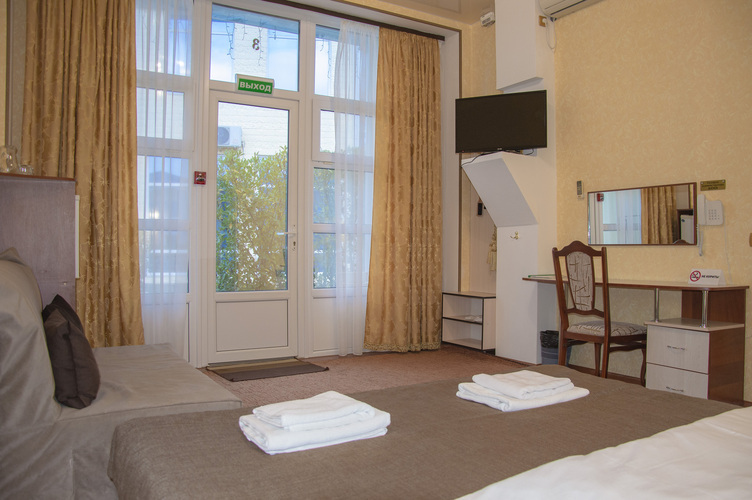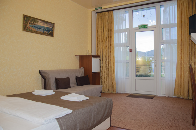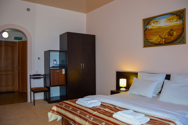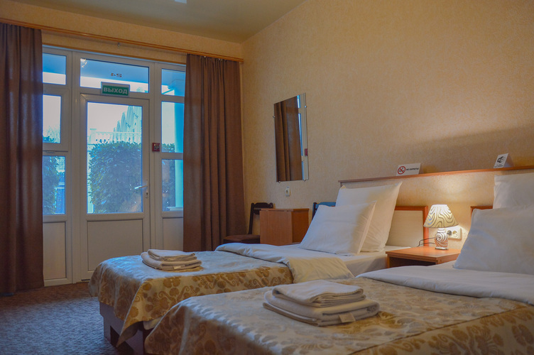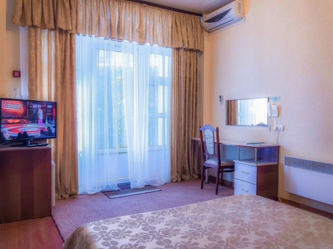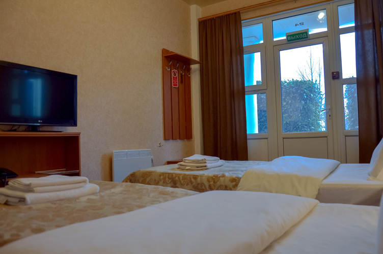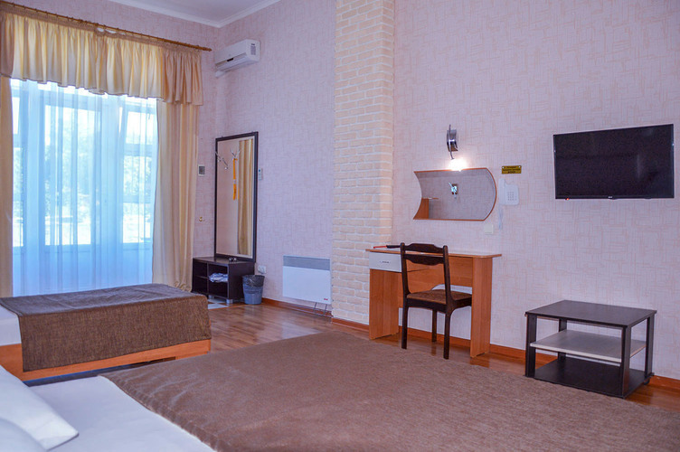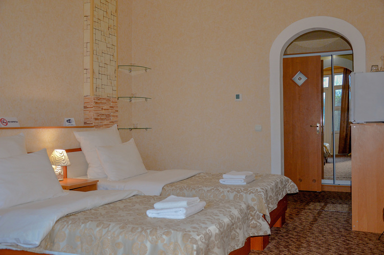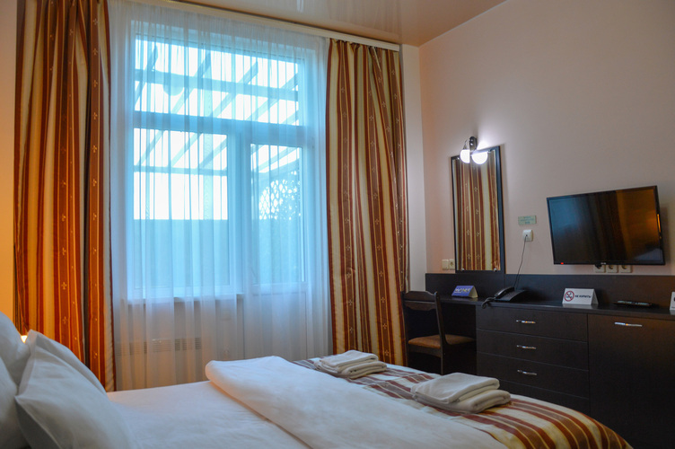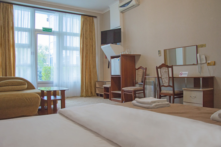 Номер категории «Стандарт улучшенный», общей площадью 35 м2, рассчитан на проживание до 3х человек. В номере: двуспальная кровать односпальная кровать холодильник телефон плазменный телевизор с цифровыми каналами кондиционер конвектор Wi-Fi интернет санузел, душ кабинка набор минипарфюмерии фен 3 халата 3 комплекта полотенец.