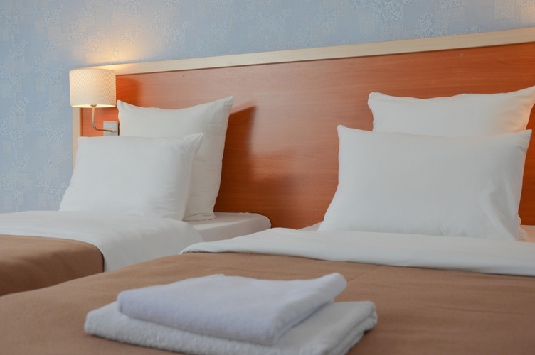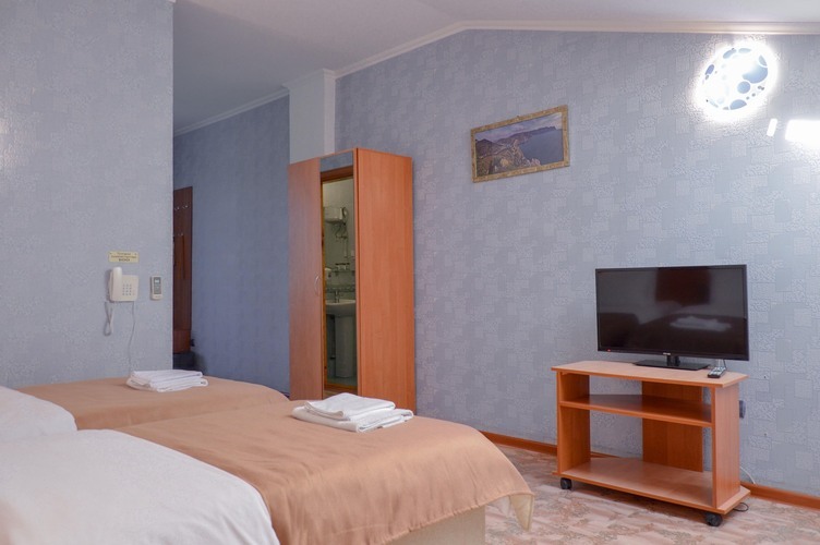 Отель Балаклавы предлагает размещение в номерах категории Стандарт двухместный, общей площадью 25 м2, рассчитан на двухместное проживание. Данная категория номеров оборудована системой кондиционирования чиллер-фанкойл В номере: 2 односпальные кровати шкаф, холодильник, телефон ковровое покрытие плазменный телевизор с цифровыми каналами конвектор Wi-Fi интернет санузел, душ кабинка минипарфюмерия фен 2 комплекта полотенец