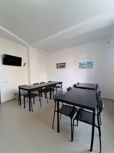 Общая кухня оснащена необходимым для приготовления пищи: проточный трёхступенчатый фильтр очистки воды, варочная поверхность, вытяжка, электрический духовой шкаф, посудомоечная машина, микроволновая печь, тостер, сэндвичница, электрочайник, кофеварка, посуда и прочие мелочи.