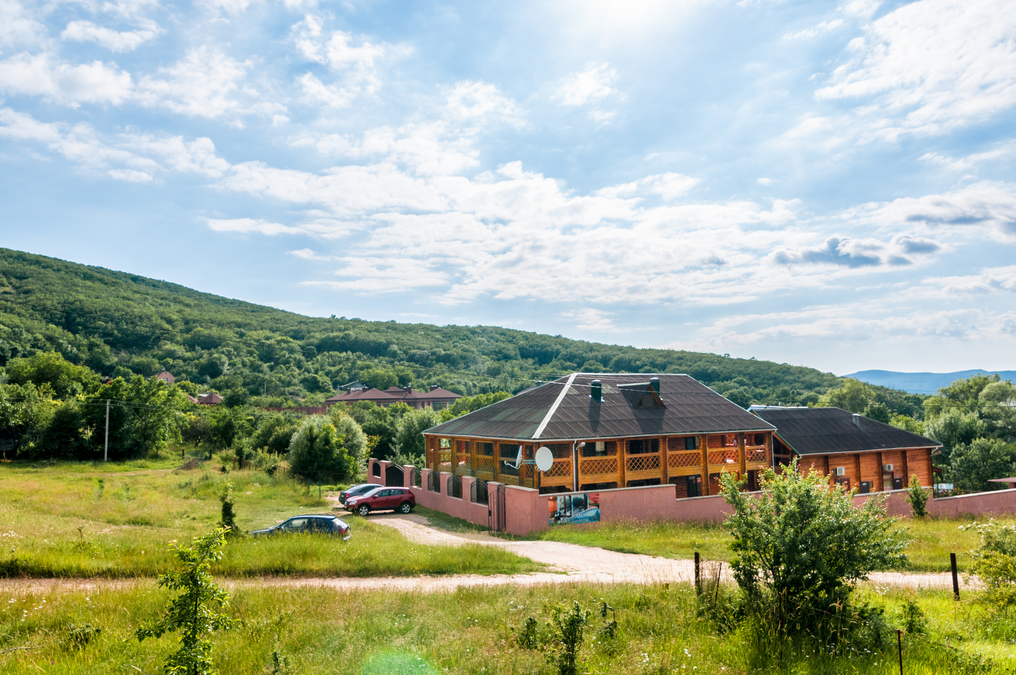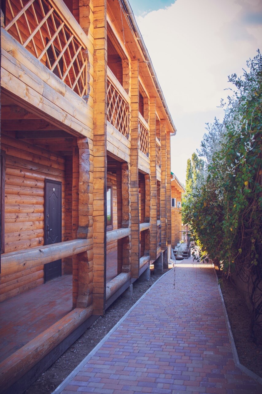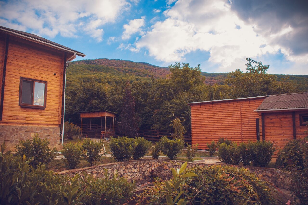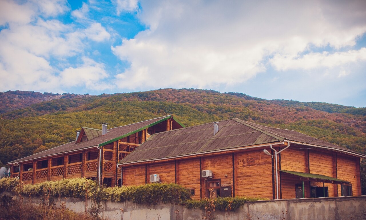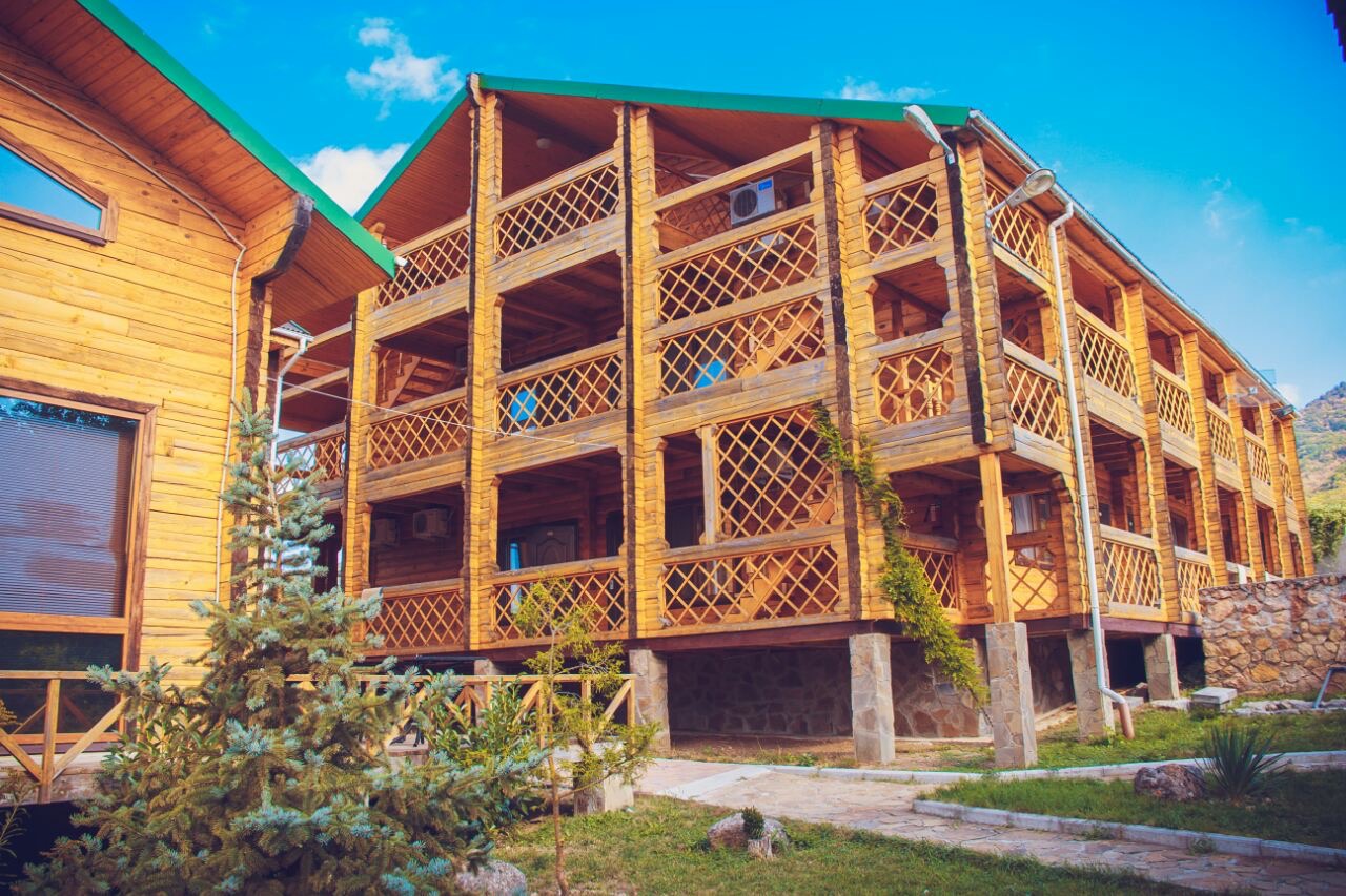 Гостиница находится в Байдарской долине. Номерной фонд находится в трехэтажном здании. Здание из сруба. площадь двухместных номеров 20 м.кв. На первом этаже 5 двухместных номера с раздельными кроватями. На втором этаже 8 двухместных номеров, из них два с раздельными кроватями и шесть с двуспальными кроватями. На третье этаже трехкомнатный люкс. Площадь номера 70 м.кв. В номере две спальни с двуспальными кроватями и большой зал . В зале раскладной диван, мягкий уголок, кухонная стенка и электрический камин. Все номера с удобствами ( душ, туалет, холодильник, кондиционер.) телевизоры только на втором и третьем этаже. Также на территории гостиницы есть столовая, бильярдная, баня и открытый бассейн.