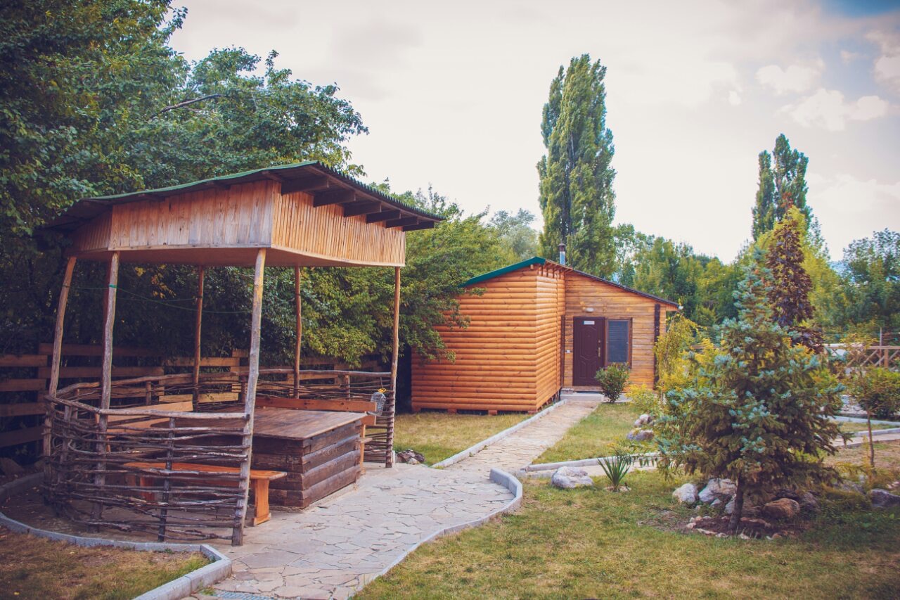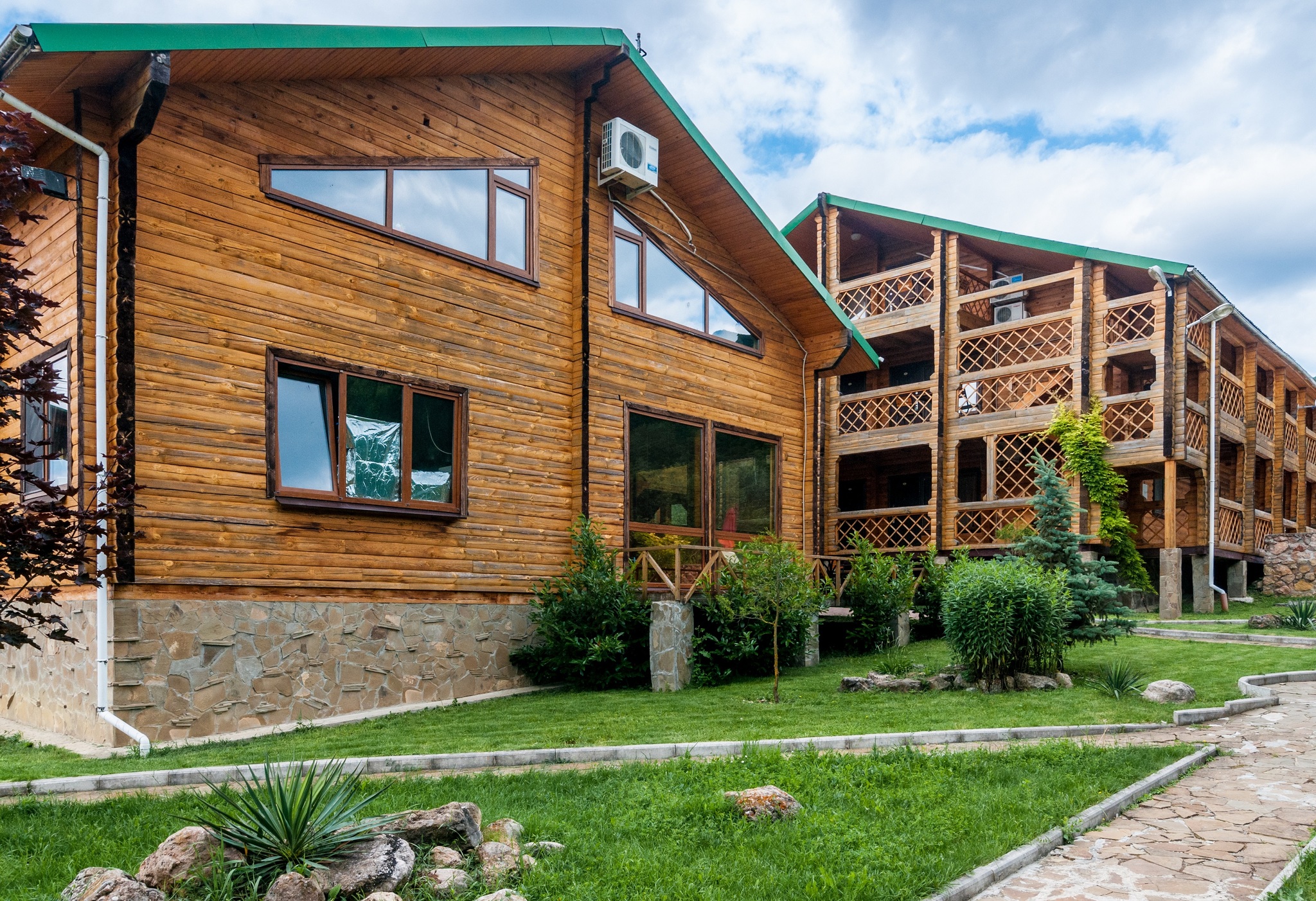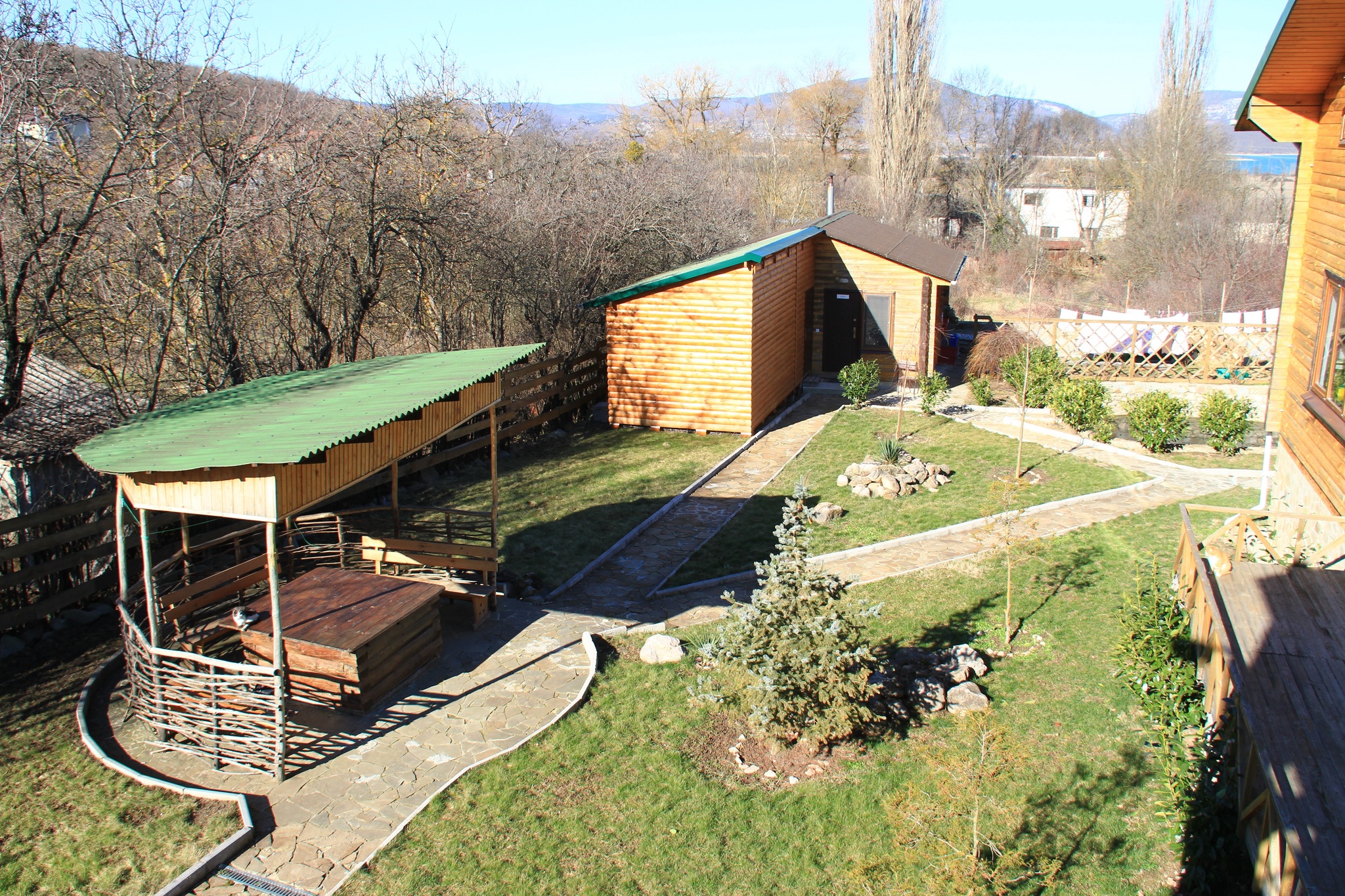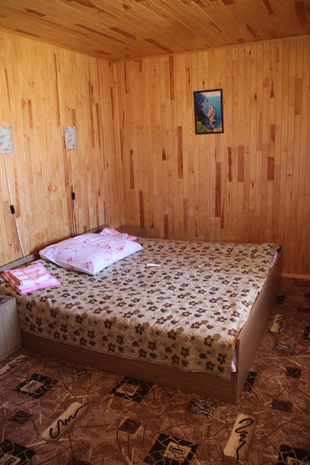 Гостиница находится в Байдарской долине. Номерной фонд находится в трехэтажном здании. Здание из сруба. площадь двухместных номеров 20 м.кв. На первом этаже 5 двухместных номера с раздельными кроватями. На втором этаже 8 двухместных номеров, из них два с раздельными кроватями и шесть с двуспальными кроватями. На третье этаже трехкомнатный люкс. Площадь номера 70 м.кв. В номере две спальни с двуспальными кроватями и большой зал . В зале раскладной диван, мягкий уголок, кухонная стенка и электрический камин. Все номера с удобствами ( душ, туалет, холодильник, кондиционер.) телевизоры только на втором и третьем этаже. Также на территории гостиницы есть столовая, бильярдная, баня и открытый бассейн.