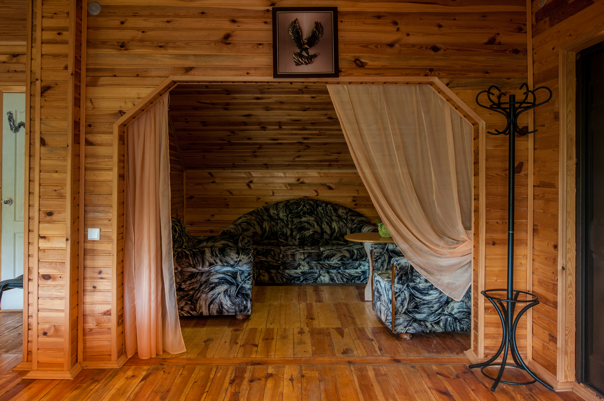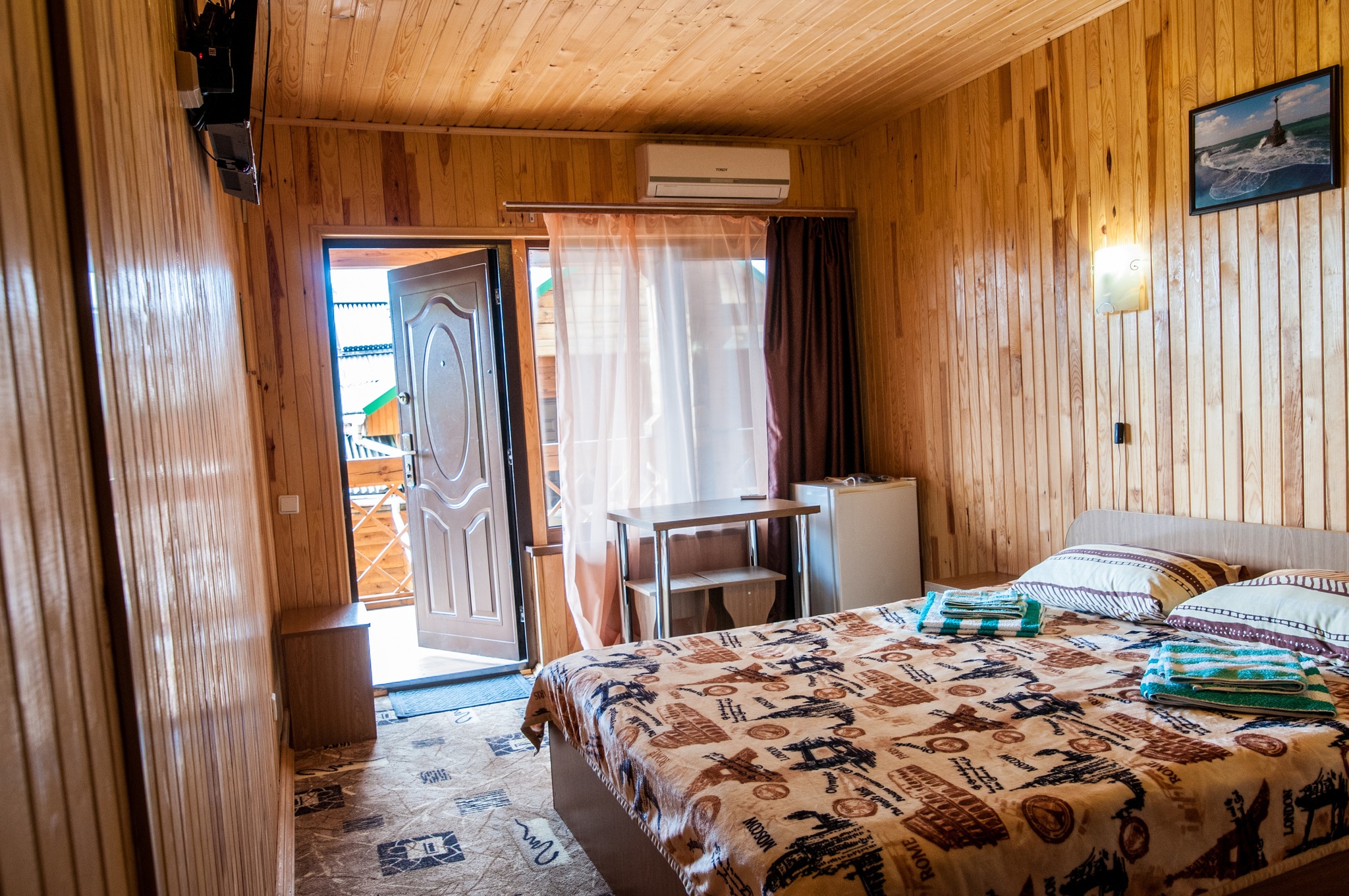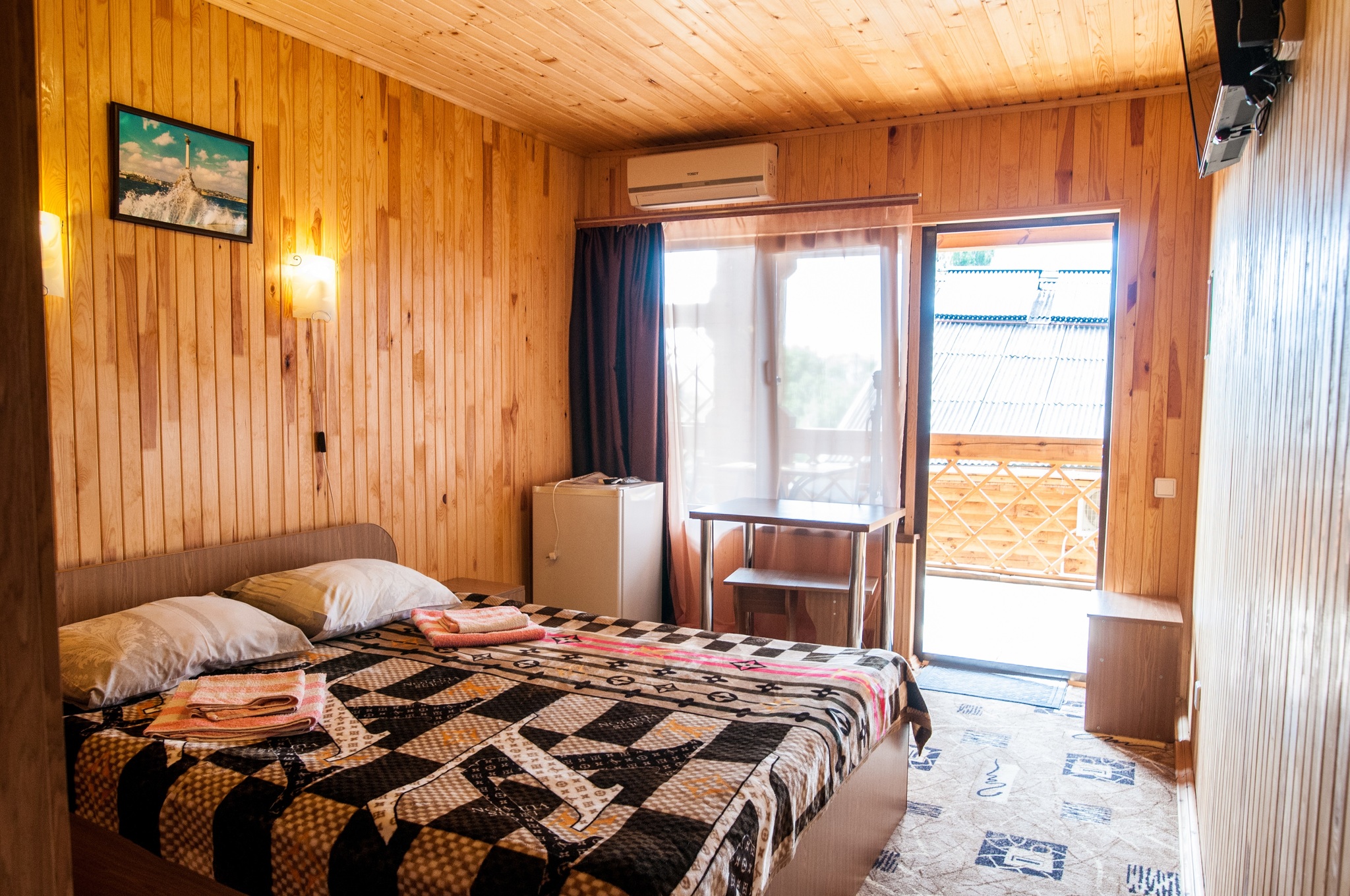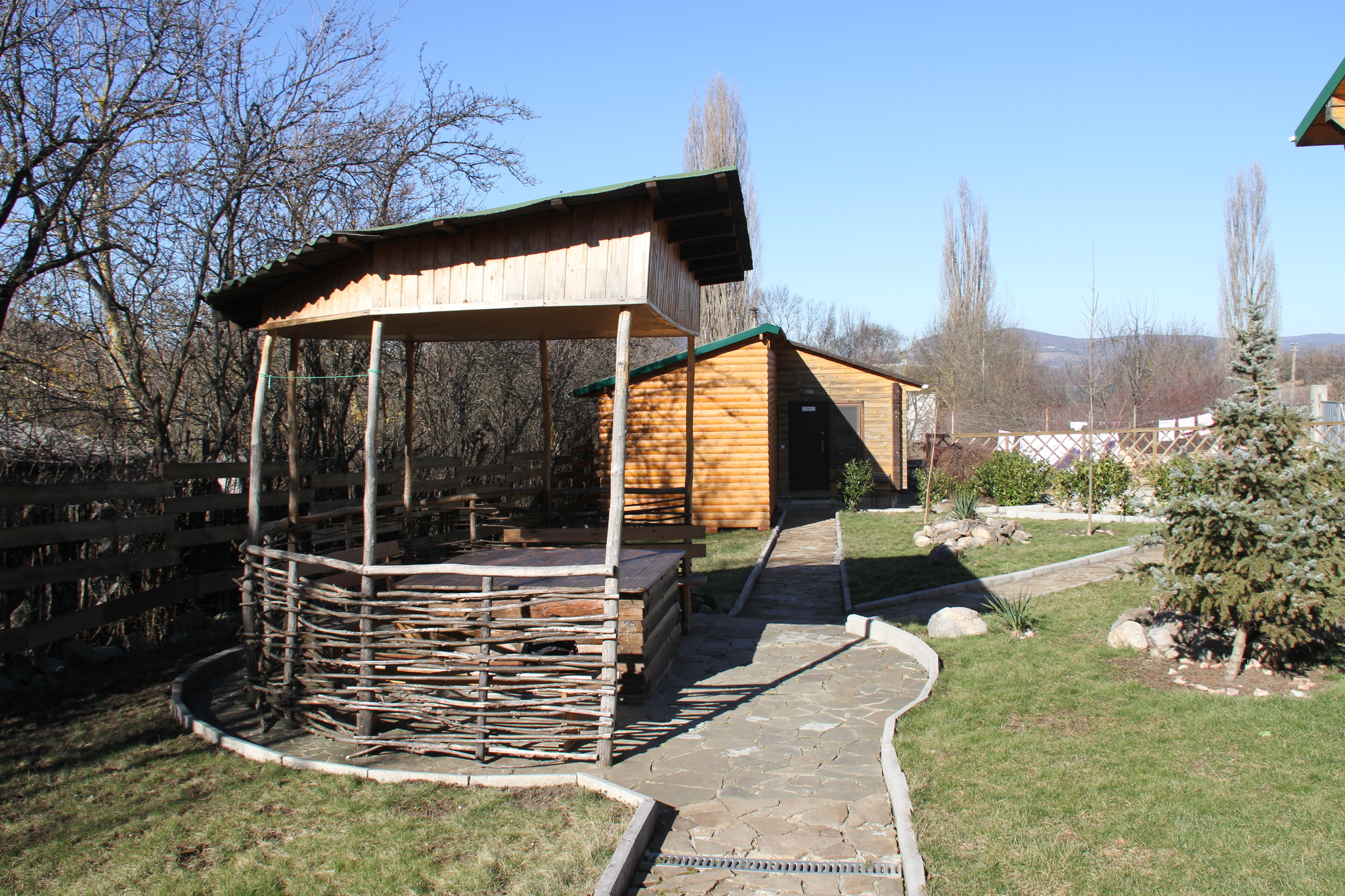 Гостиница находится в Байдарской долине. Номерной фонд находится в трехэтажном здании. Здание из сруба. площадь двухместных номеров 20 м.кв. На первом этаже 5 двухместных номера с раздельными кроватями. На втором этаже 8 двухместных номеров, из них два с раздельными кроватями и шесть с двуспальными кроватями. На третье этаже трехкомнатный люкс. Площадь номера 70 м.кв. В номере две спальни с двуспальными кроватями и большой зал . В зале раскладной диван, мягкий уголок, кухонная стенка и электрический камин. Все номера с удобствами ( душ, туалет, холодильник, кондиционер.) телевизоры только на втором и третьем этаже. Также на территории гостиницы есть столовая, бильярдная, баня и открытый бассейн.
