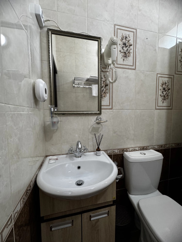 В номере гостей ждут телевизор и халат. Оснащение зависит от выбранной категории номера.
