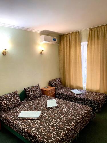 Номер уютно обставлен и оснащён необходимым, чтобы отдохнуть после долгого и насыщенного дня. Имеются телевизор. Оснащение зависит от выбранной категории номера.