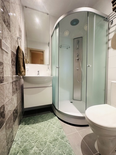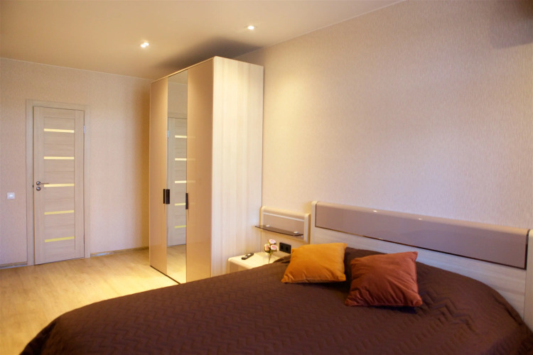 Двухкомнатная квартира имеет две полноценные спальни и кухню-гостиную 20 м с отдельным входом. Квартира подходит для проживания с маленькими детьми, есть 6 спальных мест. В квартире есть два санузла: один гостевой с душевой кабиной, второй в мастер-спальне с полноценной ванной. Квартира оборудована необходимым отдыха и проживания на постоянной основе, имеется техника и мебель.