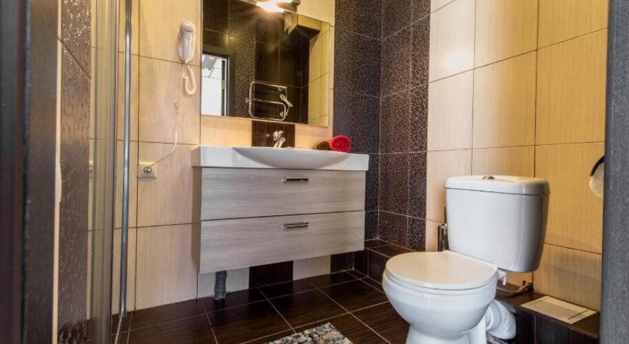 В номере вас будут ждать душ, телевизор и тапочки. Оснащение зависит от выбранной категории номера.