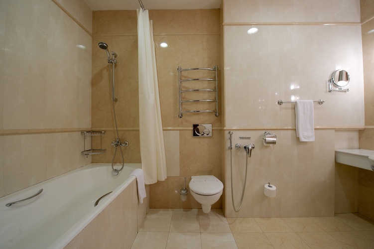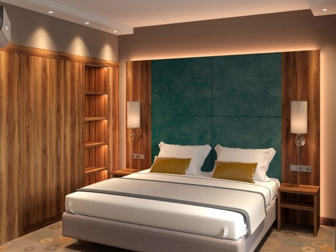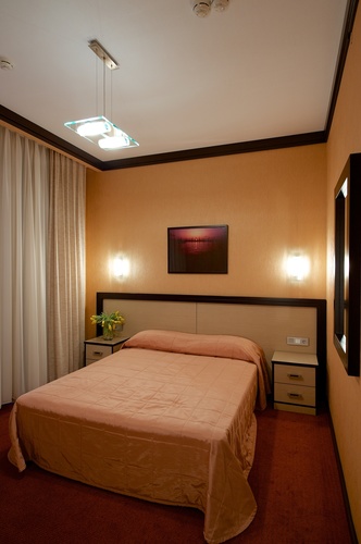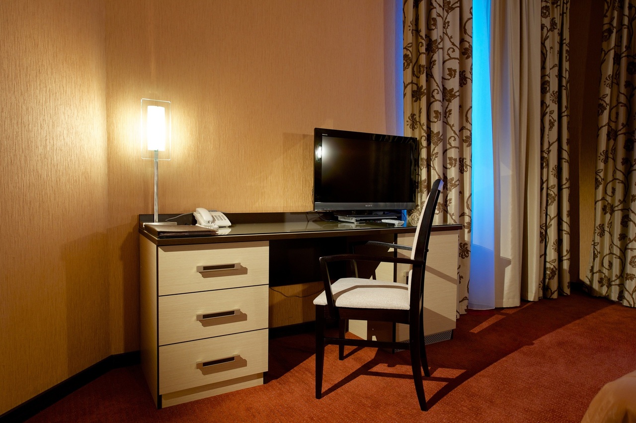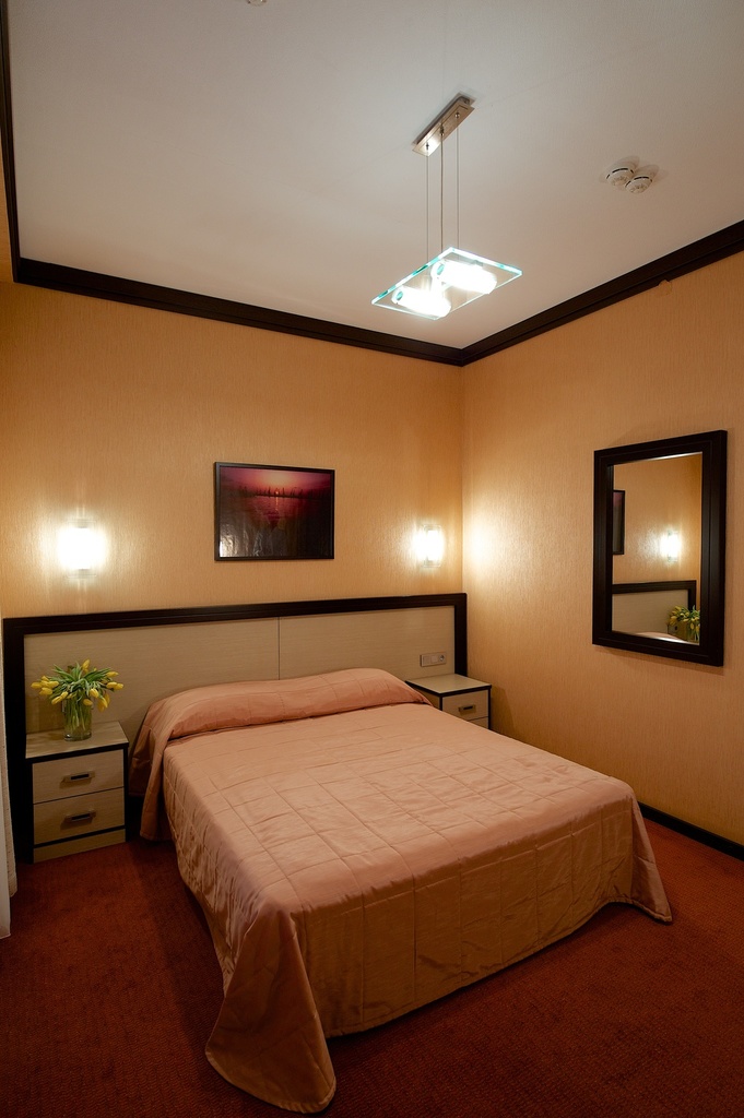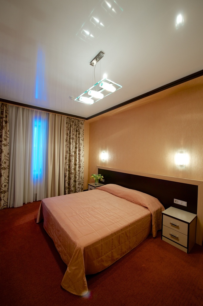 Однокомнатный номер с двуспальной кроватью 160*200 - оснащен телевизором, мини баром, шкафом для одежды, ванной комнатой с ванной, набором полотенец и гигиенических принадлежностей, фен. В номере также есть рабочее место, кондиционер. На территории гостиницы действует Wi-Fi, для гостей круглосуточно открыт бесплатный тренажерный зал.