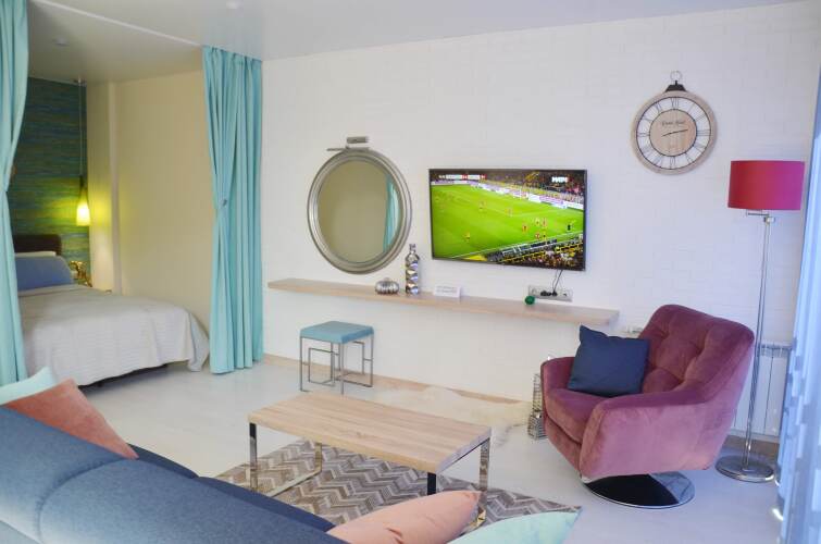 В номере вы найдёте телевизор и халат. Перечисленные услуги есть не во всех номерах.