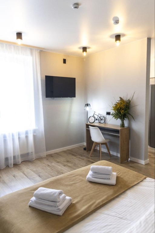 Номер уютно обставлен и оснащён необходимым, чтобы отдохнуть после долгого и насыщенного дня. Имеются телевизор и халат. Оснащение зависит от выбранной категории номера.