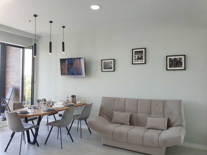 Удобно для гостей с ограниченными возможностями: на верхние этажи гостей поднимает лифт. А ещё в распоряжении гостей гладильные услуги. Сотрудники апартаментов поддержат беседу на английском и русском.
