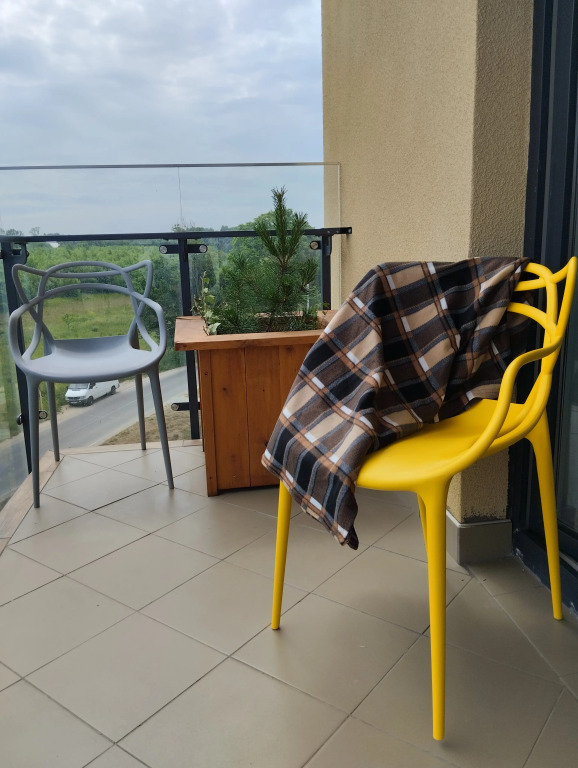В апартаментах сделан ремонт с применением натуральных материалов, к услугам гостей кухня-холл и отдельная спальня, бесплатный Wi-Fi, несколько сотен каналов телевидения, гладильные принадлежности, средства гигиены, фен, кофемашина, электрочайник, холодильник, микроволновая печь, тостер, комплект кухонной посуды, есть балкон с видом на зелёную зону. Апартаменты расположены на пятом этаже, в доме есть лифт. Для гостей на машине организована бесплатная парковка. Сотрудники апартаментов могут заказать гостям трансфер из аэропорта за отдельную плату. Возможна организация занятий теннисом.