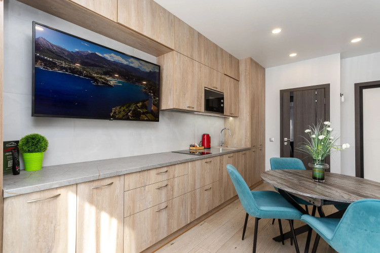 В номере вас будут ждать телевизор и халат. Оснащение зависит от выбранной категории номера.