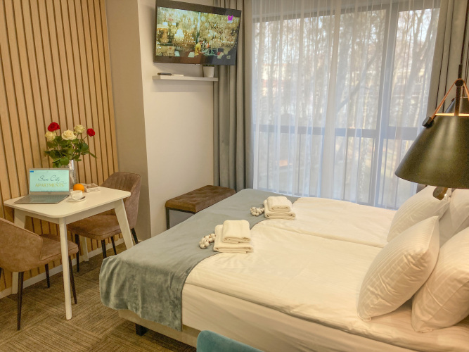 В номере гостей ждут телевизор. Оснащение зависит от выбранной категории номера.