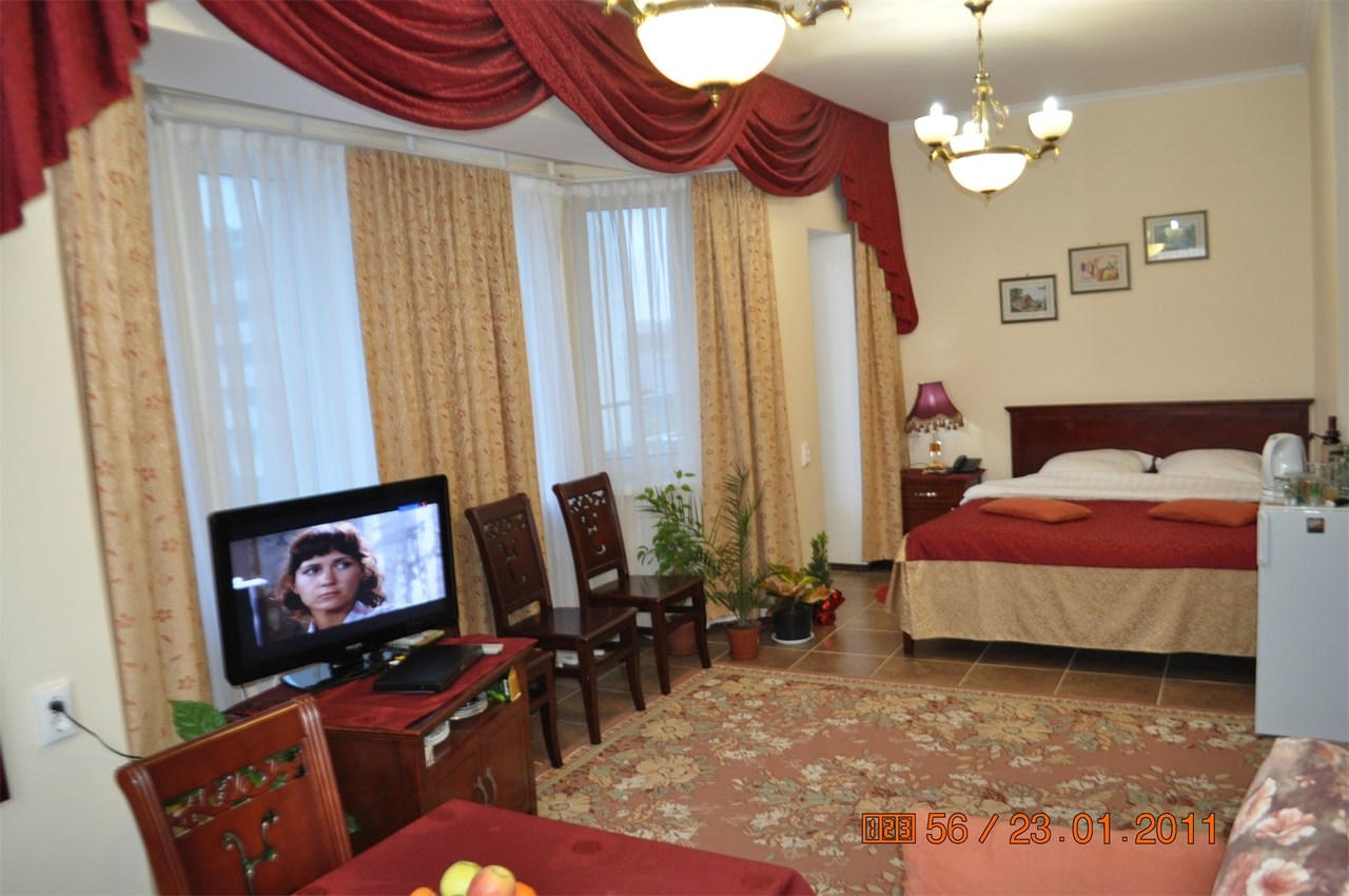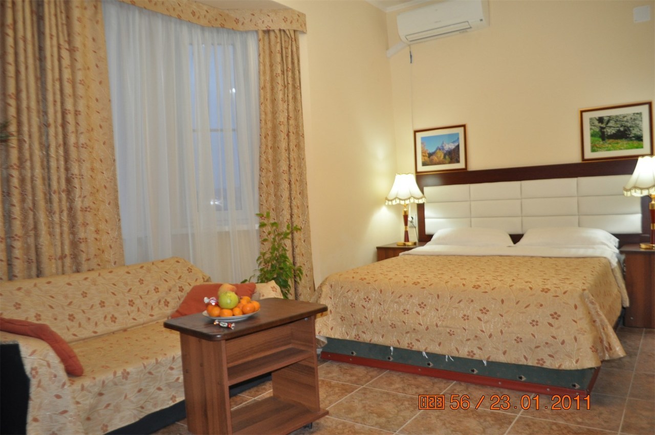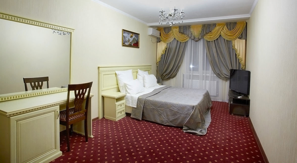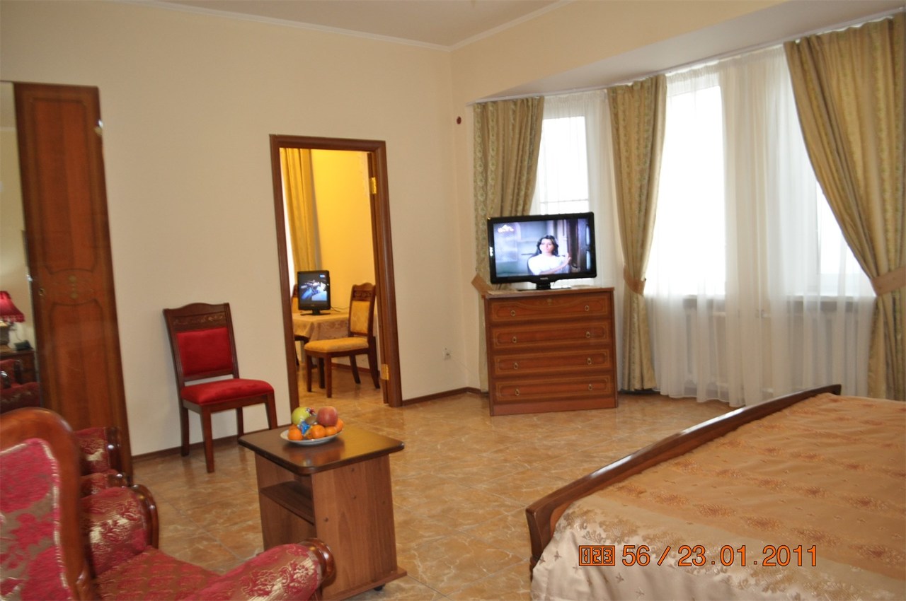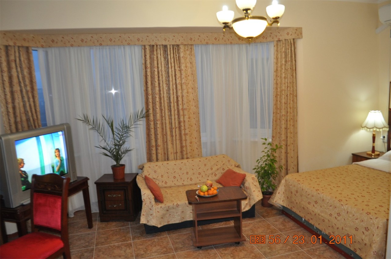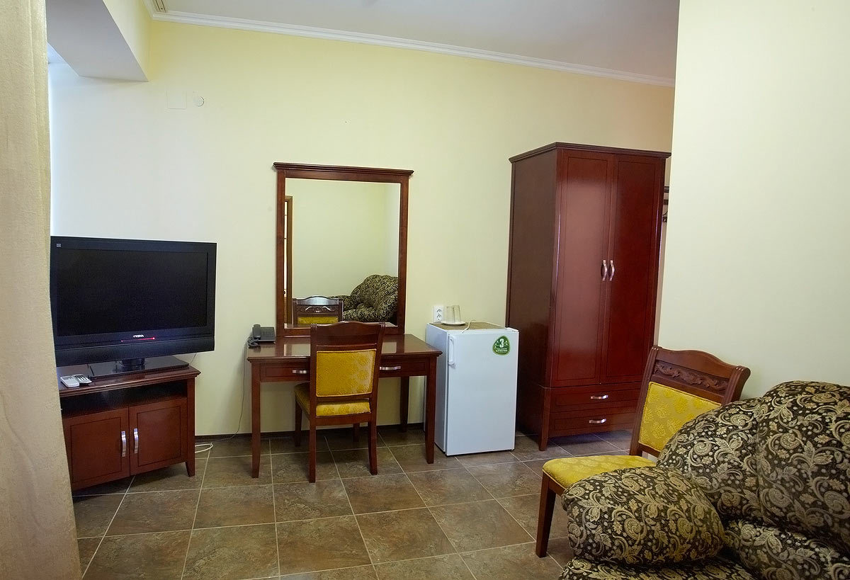 Проживание в 1-о, 2-х, 3-х, 4-х местных номерах с удобствами, санузел полной комплектации: душ, туалет, биде, раковина, фен, полотенцесушитель. Горячая, холодная вода круглосуточно. В номере удобная кровать с ортопедическим матрасом, с белыми постельными принадлежностями, полотенцами, шкаф, тумбочка, стол, стулья. Оснащение: ТВ, холодильник, сплит-система.