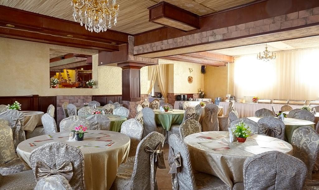 Три жилых корпуса - трехэтажный, четырехэтажный, восьмиэтажный. Три зала ресторана работают по системе «Шведский стол»: зал № 1 - 90 посадочных мест, зал № 2- 130 посадочных мест, зал № 3- 700 посадочных мест, кондиционировано. Автостоянка под видеонаблюдением.
