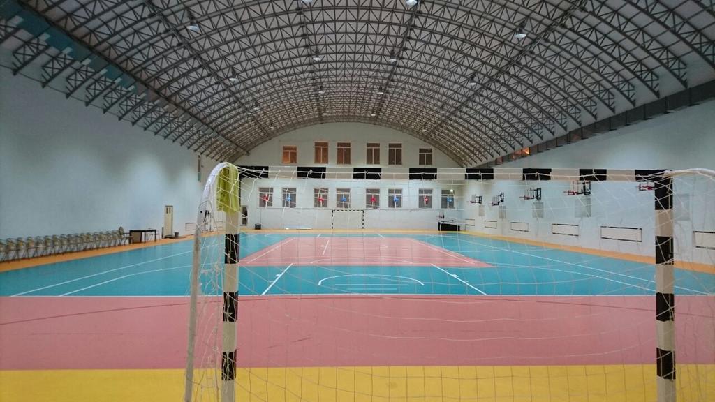 • Крытый спортивный зал покрытием терафлекс - 18х36 высота 10м,