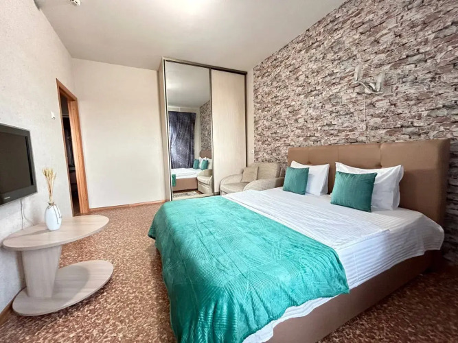Номер уютно обставлен и оснащён необходимым, чтобы отдохнуть после долгого и насыщенного дня. Имеются телевизор. Перечисленные услуги есть не во всех номерах.