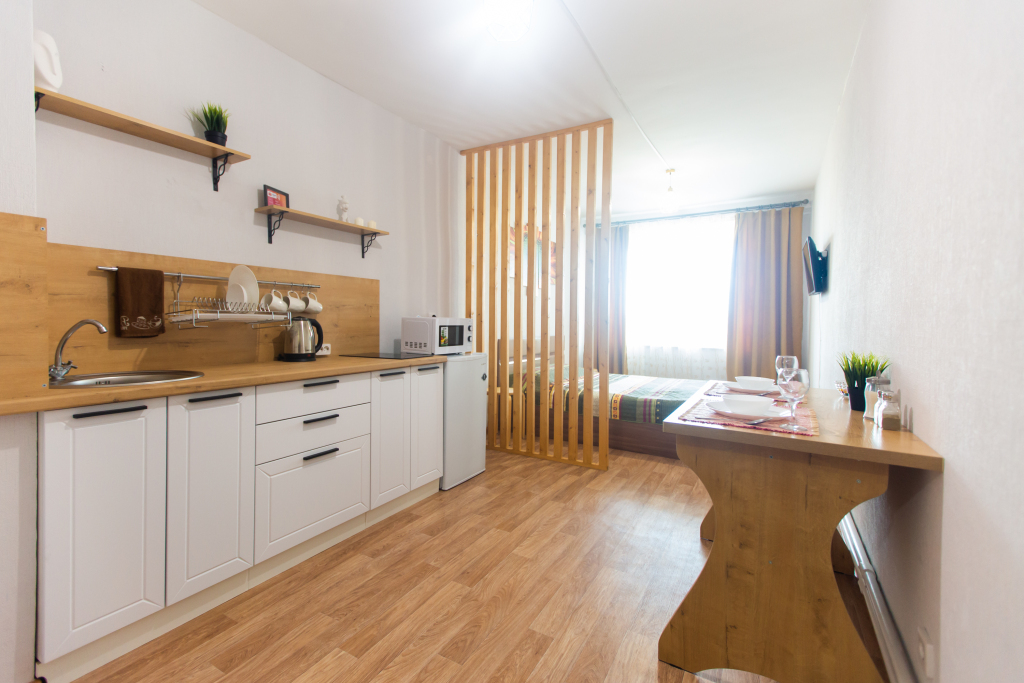 Доступная среда: работает лифт. А ещё в распоряжении гостей гладильные услуги. Сотрудники апартаментов поддержат беседу на русском.