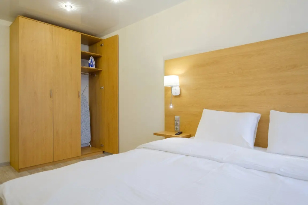 В номере вы найдёте телевизор. Оснащение зависит от выбранной категории номера.