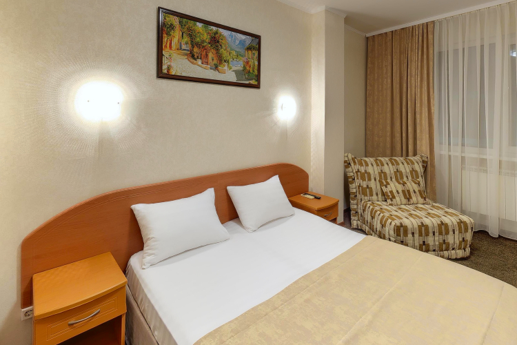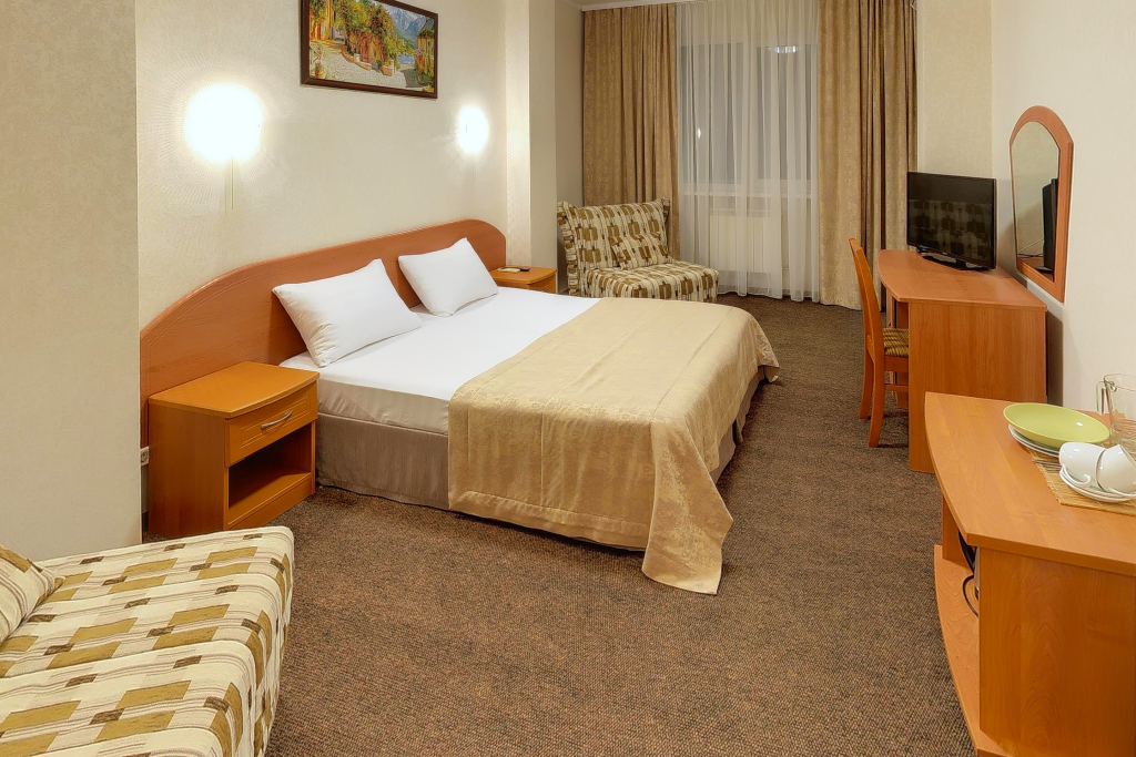 В номере вы найдёте телевизор. Оснащение зависит от выбранной категории номера.