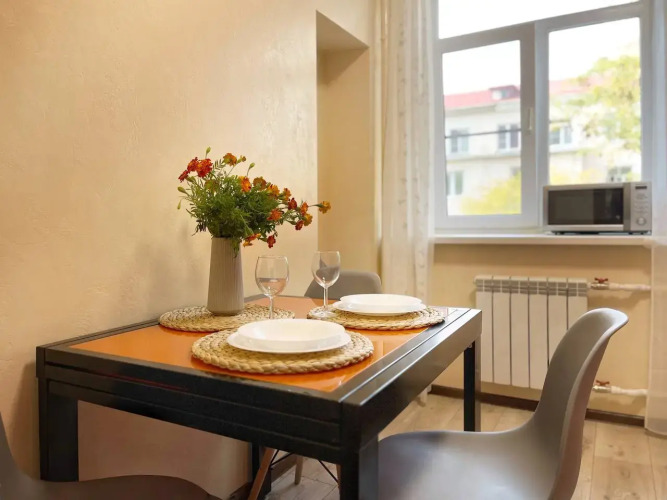 Трёхкомнатные апартаменты с балконом подойдут для семейного отдыха на море, для поездок по работе и для компании друзей. Площадь апартаментов составляет 50 кв. м, возможно размещение до шести гостей.