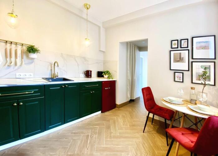 Гостям предлагаются двухкомнатные апартаменты с дизайнерским ремонтом, рассчитанные на размещение до четырёх человек. Апартаменты подготовлены для комфортного проживания гостей, в том числе для приготовления пищи.