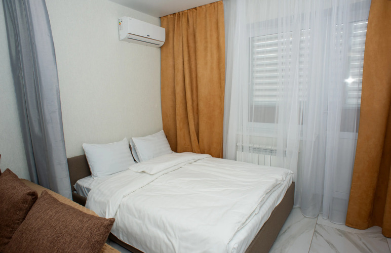 Номер уютно обставлен и оснащён необходимым, чтобы отдохнуть после долгого и насыщенного дня. Имеются телевизор и халат. Оснащение зависит от выбранной категории номера.