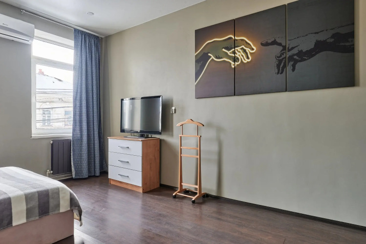 Номер уютно обставлен и оснащён необходимым, чтобы отдохнуть после долгого и насыщенного дня. Имеются телевизор. Оснащение зависит от выбранной категории номера.