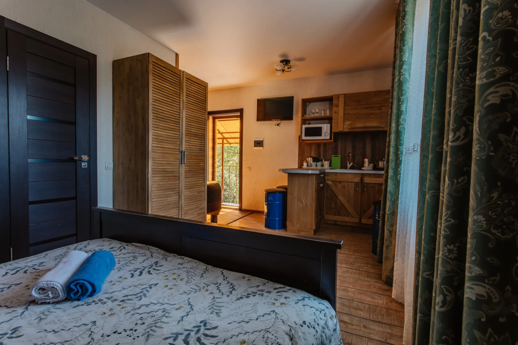 Номер уютно обставлен и оснащён необходимым, чтобы отдохнуть после долгого и насыщенного дня. Имеются телевизор и халат. Оснащение зависит от выбранной категории номера.