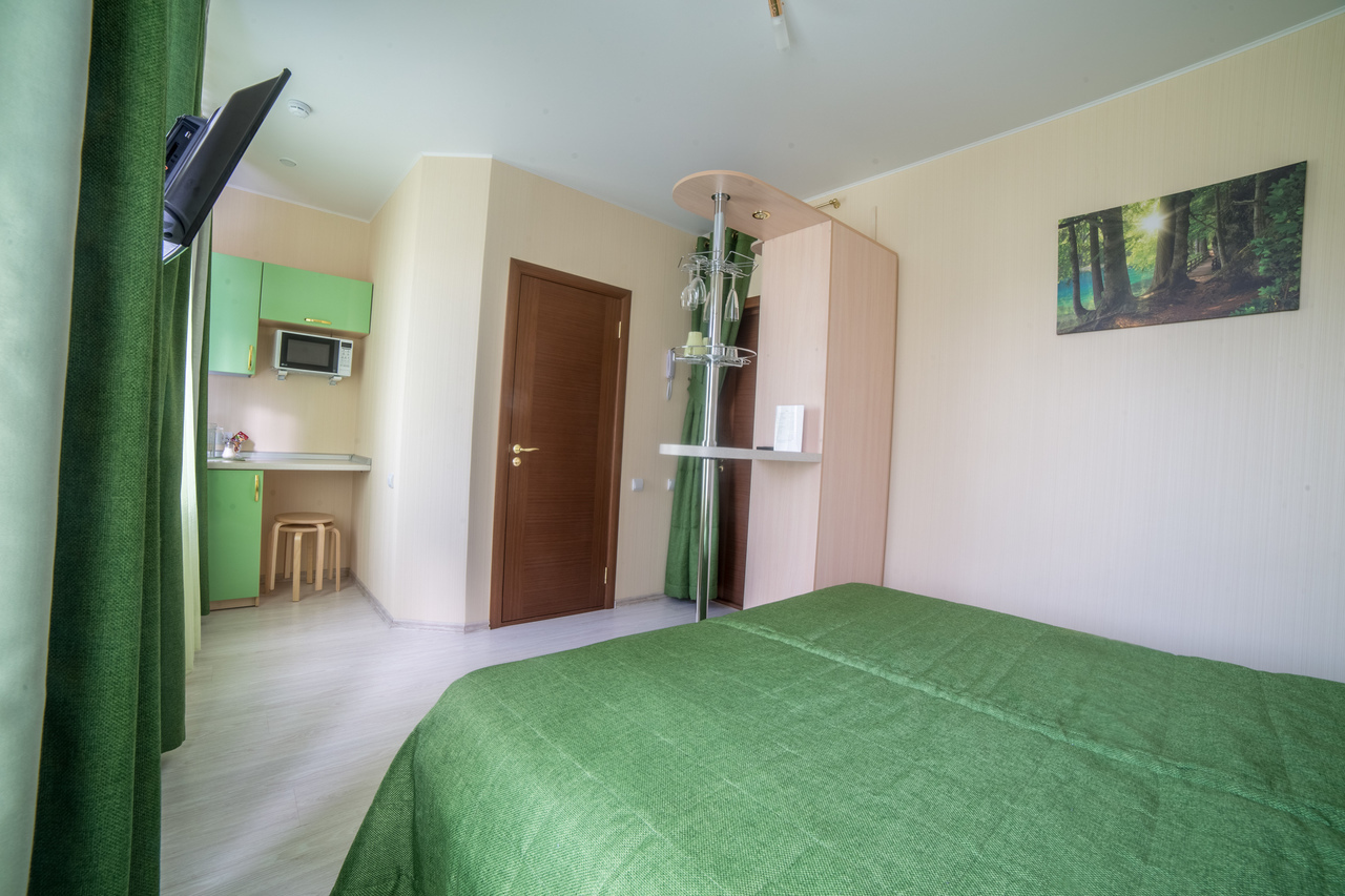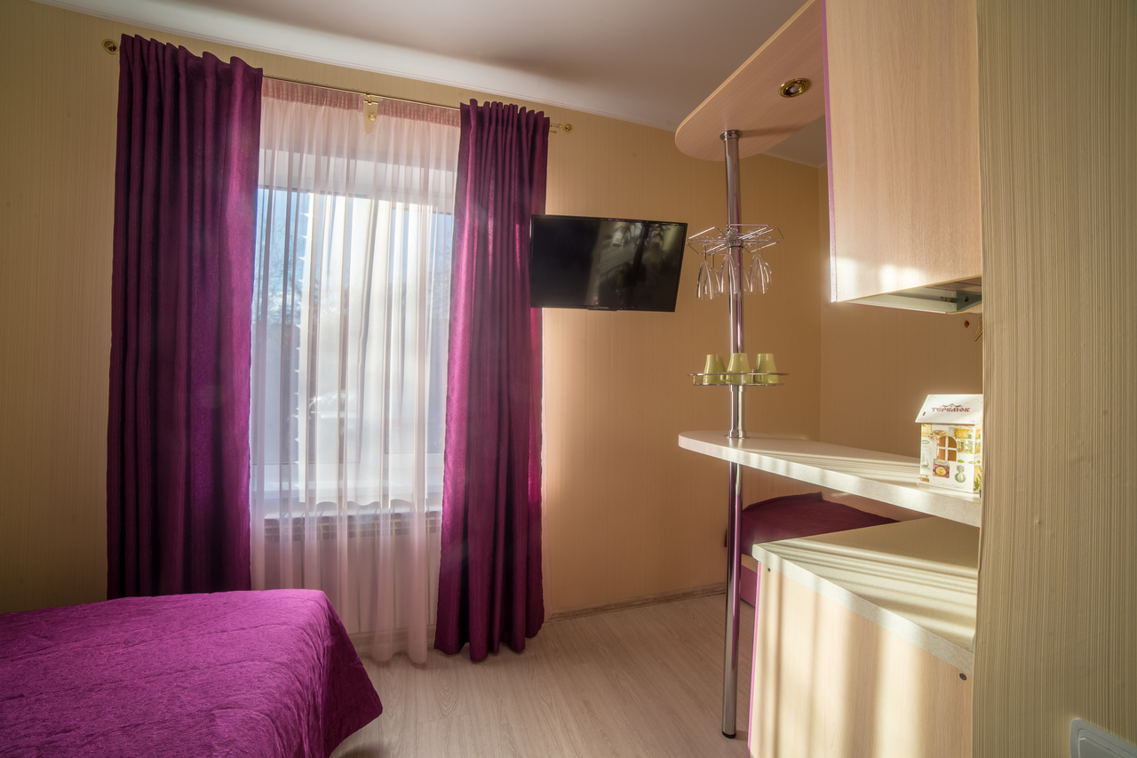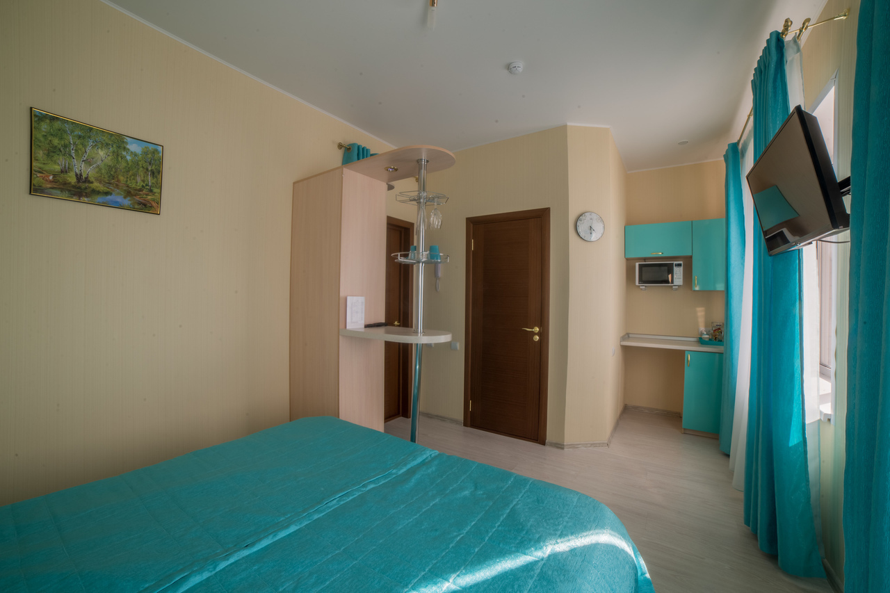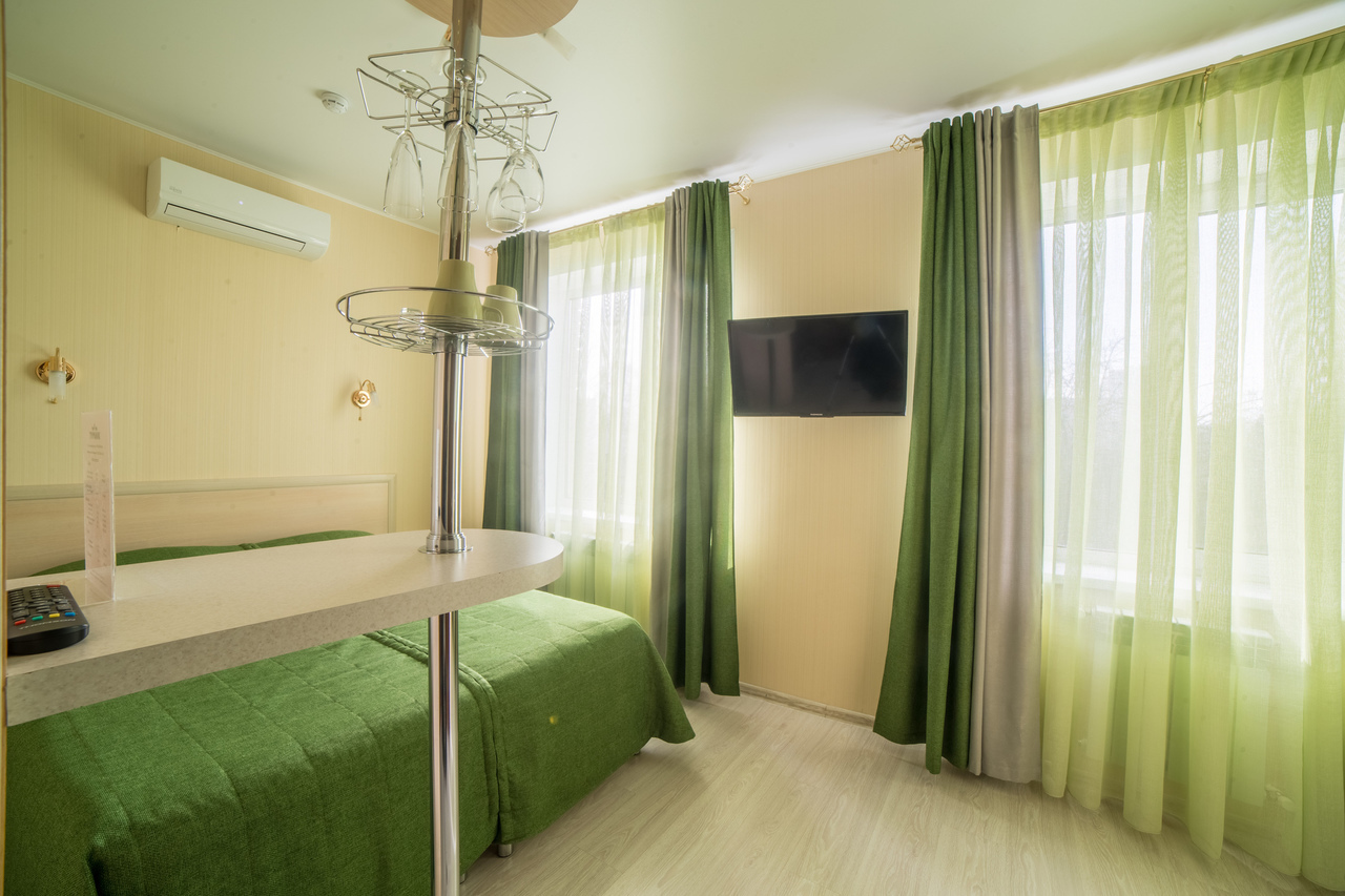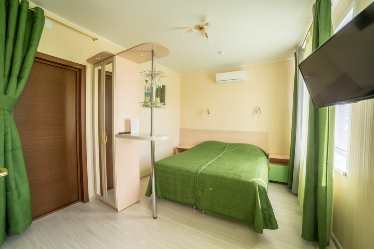 Отель на 25 номеров построен в 2016 году. Номера представлены в 3-х категориях и оборудованы широкими 2-х спальными кроватями или двумя полутора спальными кроватями. В номерах плазменные телевизоры, холодильники с мини-барами, электрочайники, кондиционер, посуда. В номерах «комфорт» и «премиум» есть микроволновые печи. Санузел в каждом номере. Проживание с животными оплачивается дополнительно – 500 рублей. Круглосуточная стойка регистрации и собственное кафе.