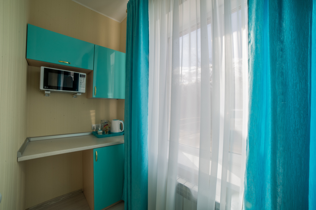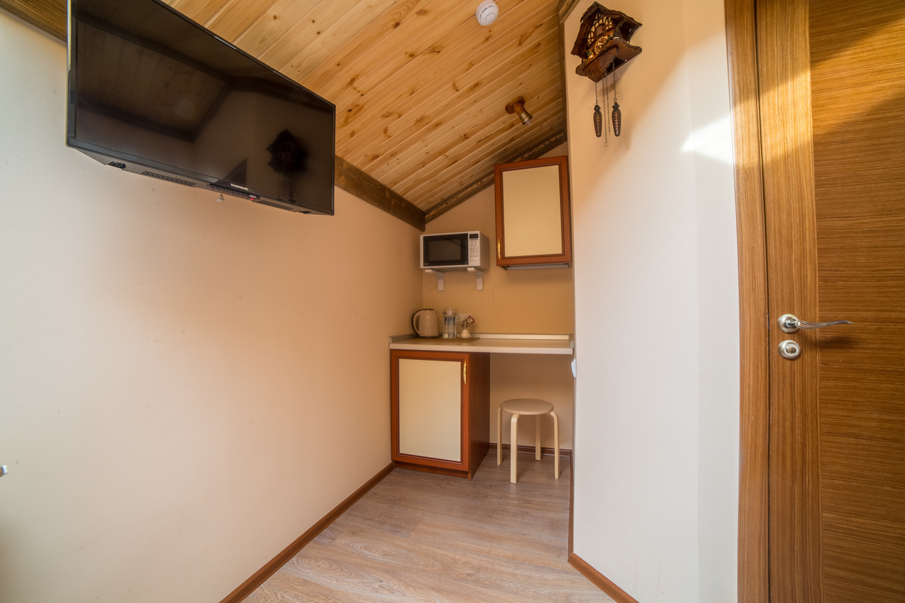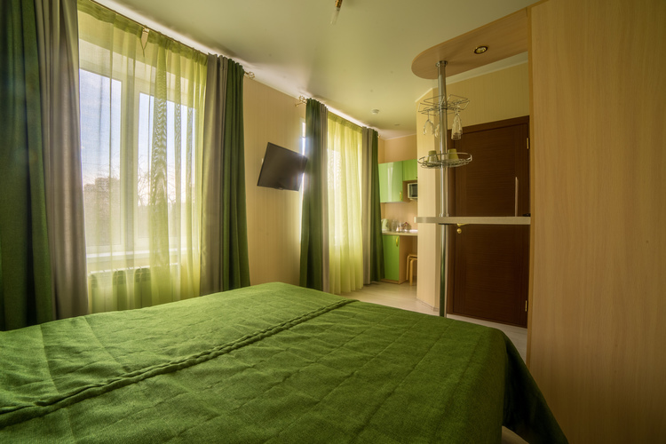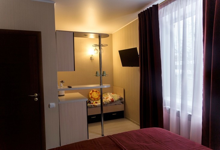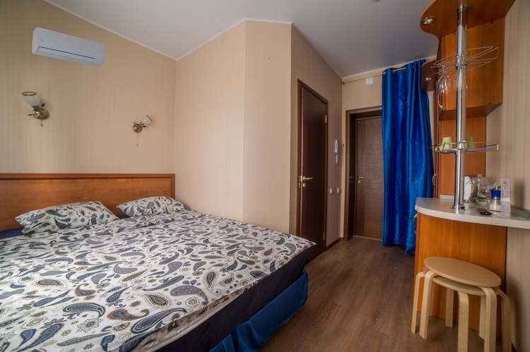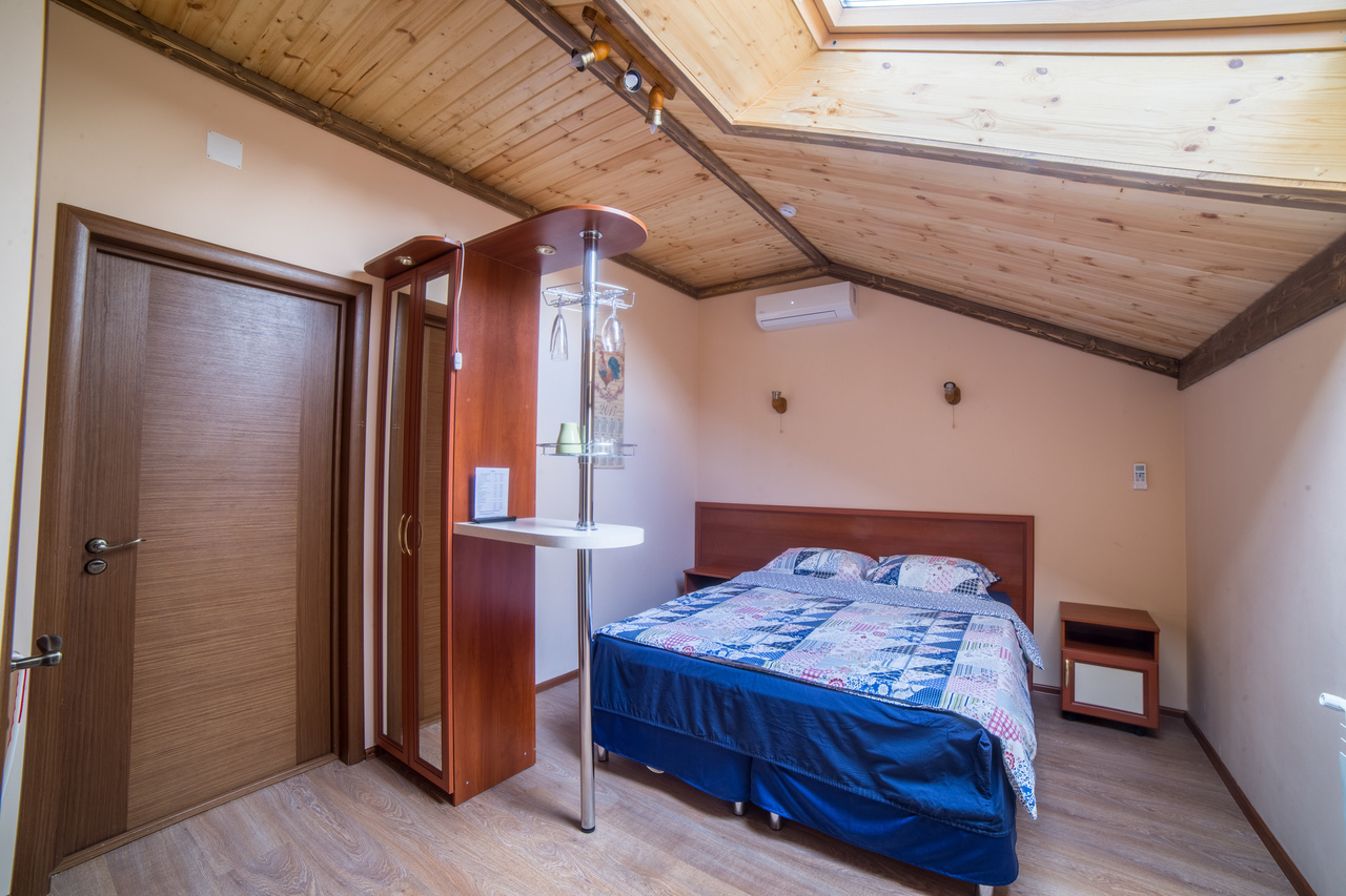 Отель на 25 номеров построен в 2016 году. Номера представлены в 3-х категориях и оборудованы широкими 2-х спальными кроватями или двумя полутора спальными кроватями. В номерах плазменные телевизоры, холодильники с мини-барами, электрочайники, кондиционер, посуда. В номерах «комфорт» и «премиум» есть микроволновые печи. Санузел в каждом номере. Проживание с животными оплачивается дополнительно – 500 рублей. Круглосуточная стойка регистрации и собственное кафе.