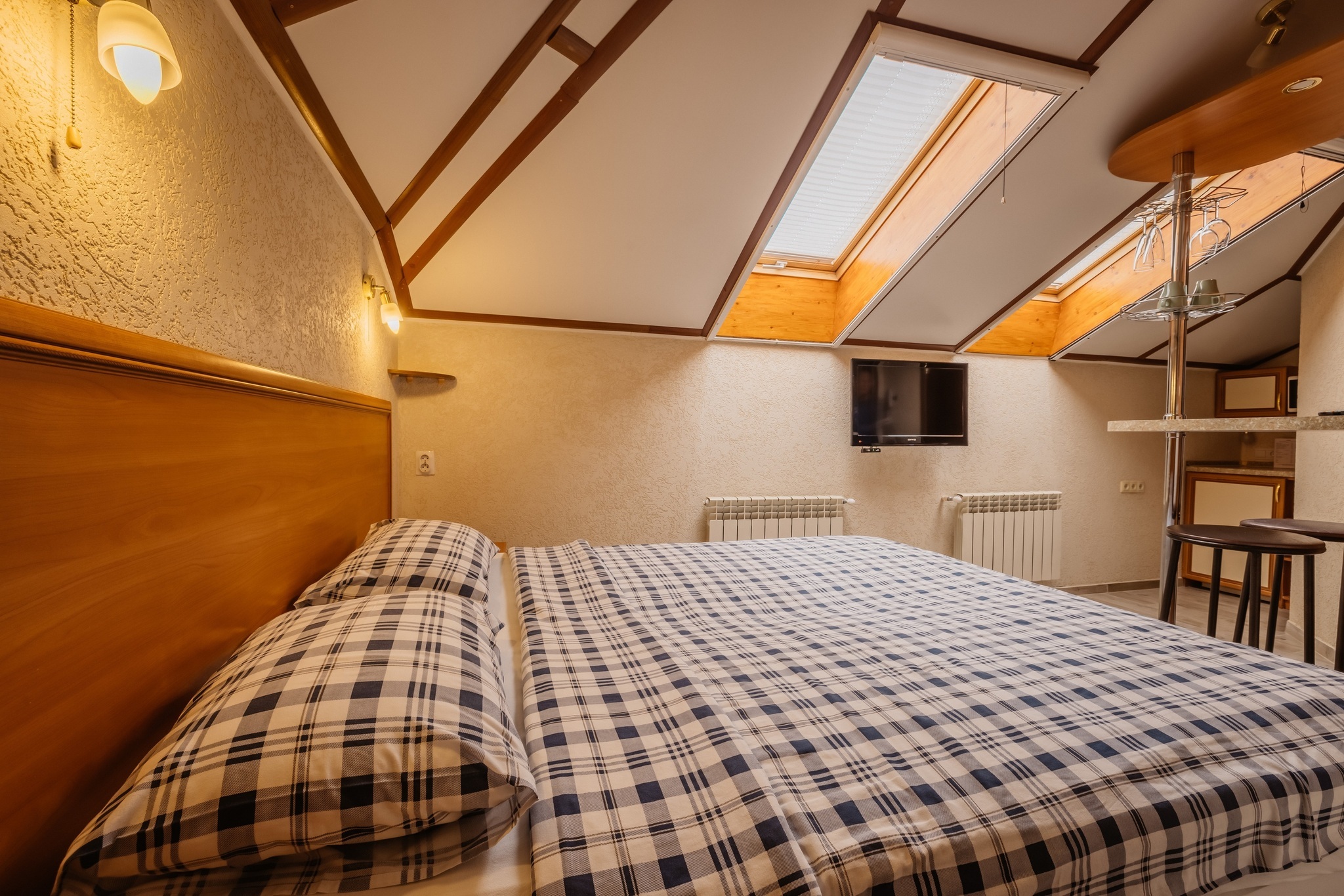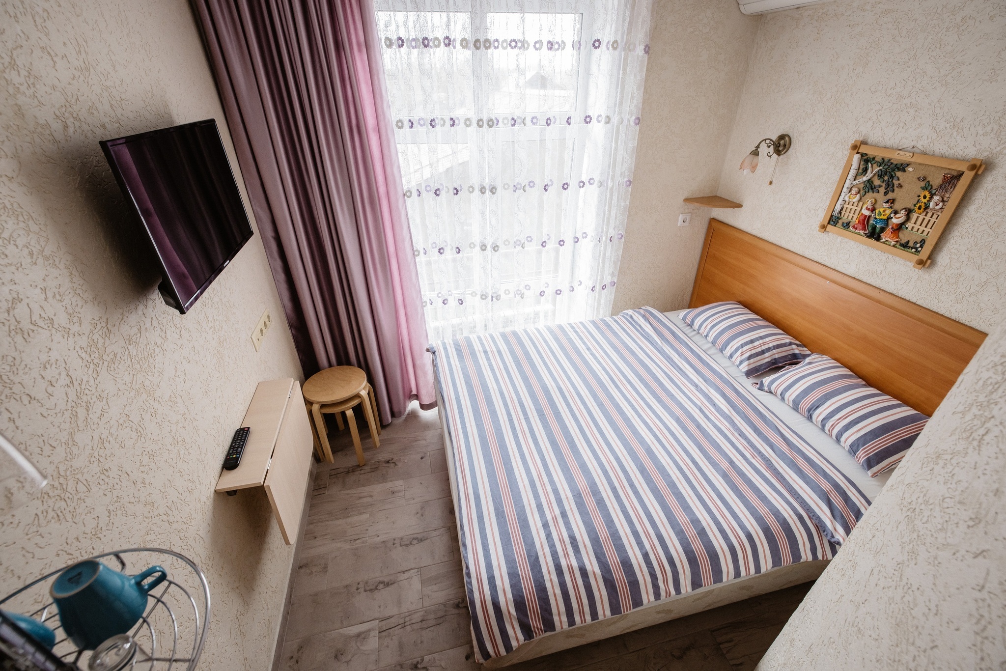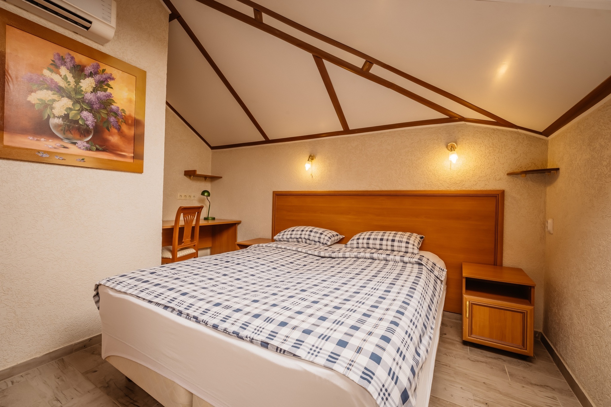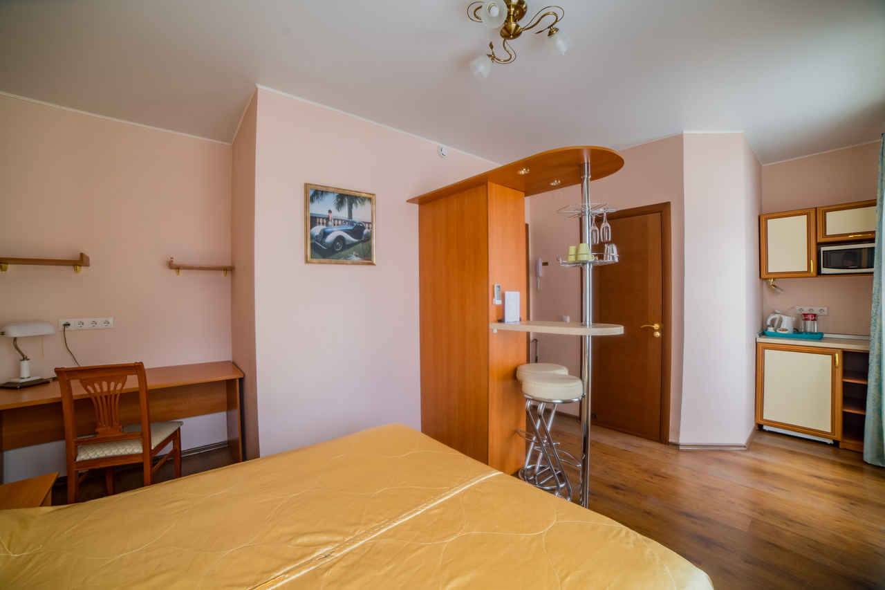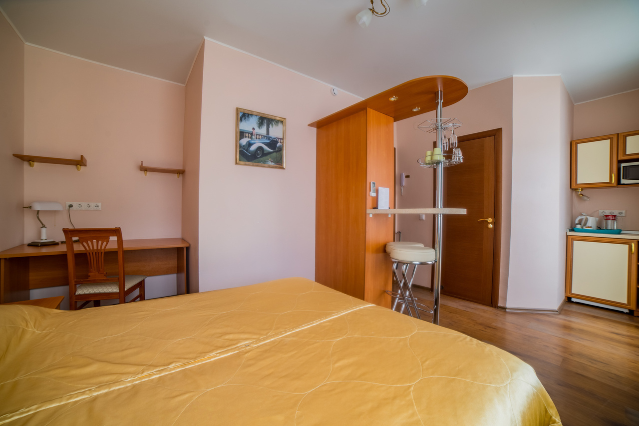 В отеле 15 номеров двух категорий: «стандарт» и «премиум». Все номера оборудованы удобными кроватями, плазменными телевизорами, кондиционерами, электрическими чайниками, холодильниками с мини-барами, СВЧ печами и посудой. Санузел в каждом номере.
