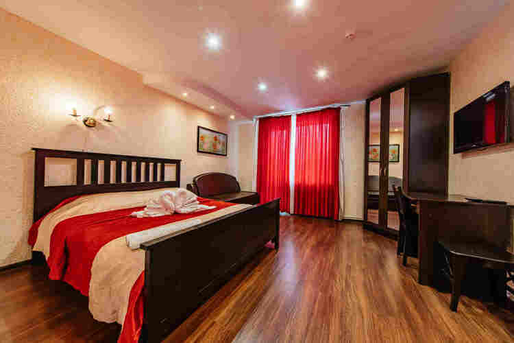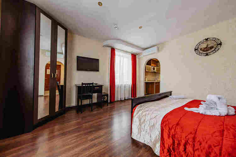 Уютные номера с авторским ремонтом предусматривает двухместное проживание, оборудованы отдельным санузлом. Номера второго этажа с балконами. В номере: двуспальная кровать; плазменный телевизор; шкаф для одежды; письменный стол и стулья; мини-кухня с индукционной плитой; СВЧ печь; Холодильник с мини-баром; электрический чайник; кондиционер. в некоторых номерах есть небольшой диван. Санузел: Раковина; Унитаз; Ванна; фен; банные принадлежности (гель для душа, шампунь, жидкое мыло для рук, зубные на
