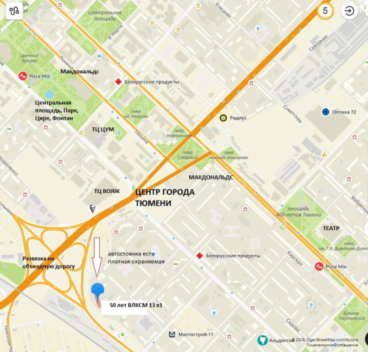 адрес на карте Тюмень, улица 50 лет ВЛКСМ, д.13/1, с описанием