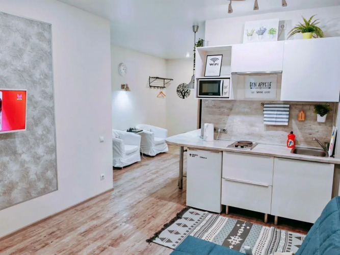 Хотите оставаться на связи? В апартаментах есть Wi-Fi. А ещё в распоряжении гостей индивидуальная регистрация заезда и отъезда.