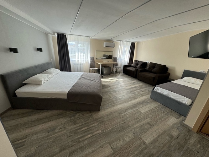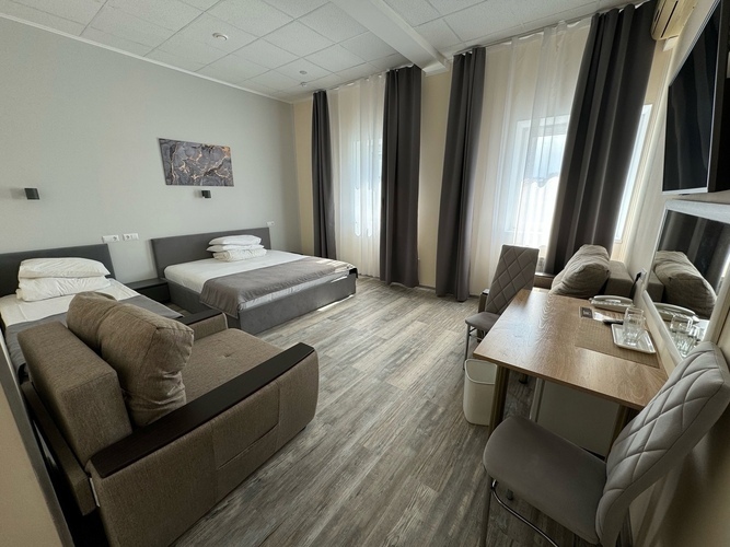 Отель расположен в 3 км от центрального железнодорожного вокзала Тюмени и в 18 км от международного аэропорта Тюмени.