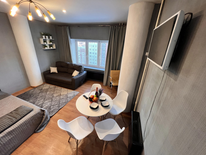 Апартаменты Центр Студия Voyage Комфорт, адрес на карте Тюмень, улица 50 лет ВЛКСМ, д. 15, с характеристиками номеров и возможностью онлайн бронирования на ресурсе ВашОтель.RU , цены проживания и удобства.