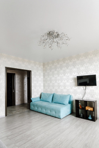 Из апартаментов открывается панорамный вид на Волгу, сделан дизайнерский ремонт. Апартаменты подходят как для семейного отдыха, так и для рабочей поездки. Квартира оснащена мебелью и многофункциональной техникой, и имеет 6 спальных мест: две односпальные кровати с ортопедическими матрасами и два больших дивана в гостиной. Также в гостиной располагается камин.