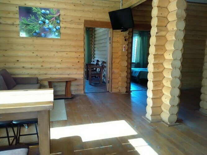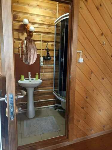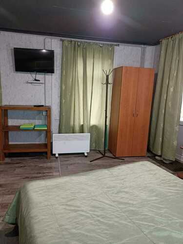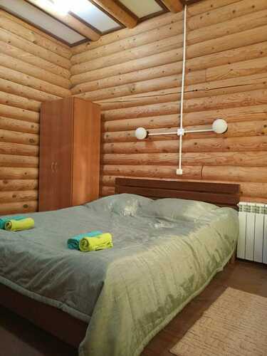 Для гостей приготовлены светлые , уютные спальни с двуспальными или односпальными кроватями с постелью. Есть санузел с душевой кабиной. В холе имеется диван, телевизор, небольшая кухонная зона, холодильник, микроволновая печь и набор посуды. На территории под навесом расположена электрическая плита. Так же наши гости могут воспользоваться казаном или мангалом. Здесь вы сможете переночевать, приготовить еду и отдохнуть. Все мобильные операторы ловят хорошо.