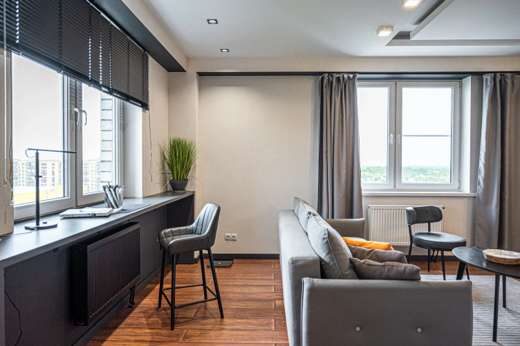 В квартире: кухня-гостиная более 40 кв. м., две изолированные комнаты, рабочее место, раздельный санузел с дополнительной раковиной. Оснащение включает: фильтрацию питьевой воды, белое постельное бельё, полотенца, стиральную машину, варочная панель, микроволновку, холодильник, чайник, кофемолку, фен, утюг, Smart TV с подпиской «ОККО», Wi-Fi, настольные игры, раскраски, журналы, blackout-шторы, ограничители на окнах, тёплый пол в ванной, туалете, прихожей, кухне и лоджии. Имеется игровая консоль Sony PlayStation 4 Pro с играми на любой вкус и Яндекс Станция с Алисой.