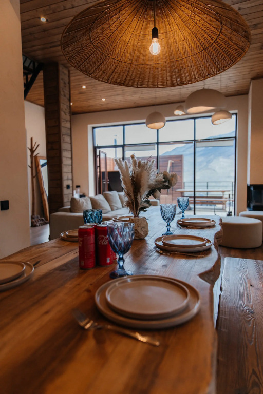 Из окон открывается вид на горы. К услугам гостей бесплатный доступ к Wi-Fi и парковке. На территории есть площадка с барбекю, летняя терраса с креслом-качалкой и столом для завтраков. Гостям предоставляются мангал, шампуры, посуда, чай и кофе, постельное бельё и полотенца, одноразовые гигиенические принадлежности. В коттедже установлены телевизор и мини-бар.