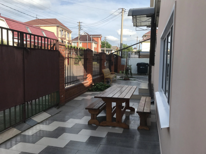 Гостевой дом расположен на огороженной территории. Стоянка для машин находится около гостевого дома. К услугам гостей Wi-Fi, парковка, детская площадка c батутом и качелями, общая лаундж-зона, мангал и общие кухни, где можно приготовить еду самостоятельно.