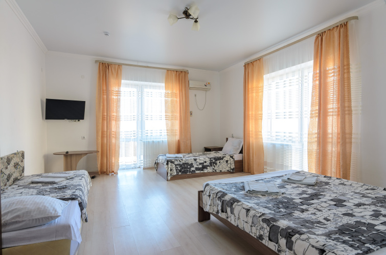 Во всех номерах: мини-холодильник, сплит-система, телевизор ЖК, набор необходимой мебели (кровати, прикроватные тумбы, столики, платяной шкаф). Все санузлы с душем. Номера, независимо от категории, просторные, в каждом есть балкон или панорамные окна.