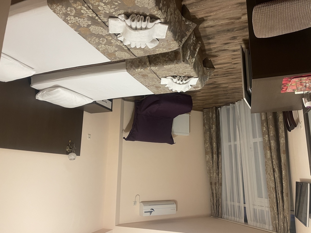 В номере: санузел (душевая кабина, раковина, фен, шампунь, мыло, туалетная бумага), кровать двуспальная или две односпальные, прикроватные тумбочки, светильники, сейф, телевизор ж/к, холодильник, сплит-система, принадлежности для кофе и чая, качественное постельное белье, цифровое ТВ.