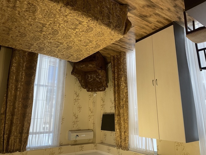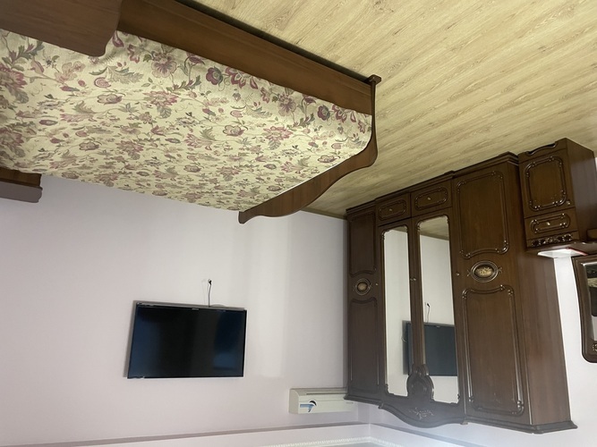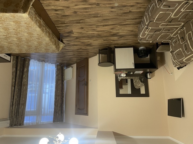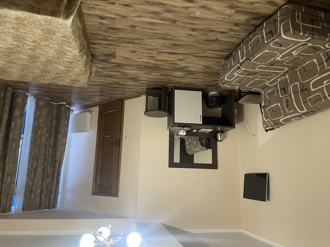 Номер оформлен в современном стиле, кровать двуспальная 180 на 200, две прикроватные тумбочки, шкаф, трюмо. Дополнительное место — диван 140 на 200,телевизор ж/к 64 диагональ, сейф, фен. Кухня полностью оборудована: холодильник, печка, микроволновка, посуда, кастрюльки, вилки, ложки, чайный набор, графин и стаканчики, электрочайник, стол со стульчиками. Ванная комната с ванной, зеркало, на каждого проживающего гостя предоставляется мыло, шампунь, туалетная бумага.