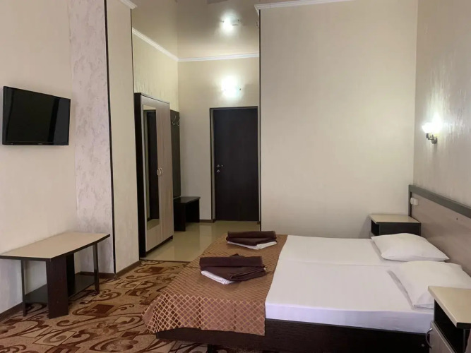 Номер уютно обставлен и оснащён необходимым, чтобы отдохнуть после долгого и насыщенного дня. Имеются телевизор. Перечисленные услуги есть не во всех номерах.